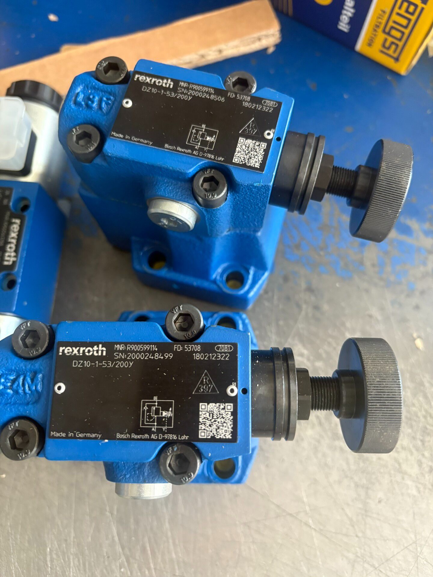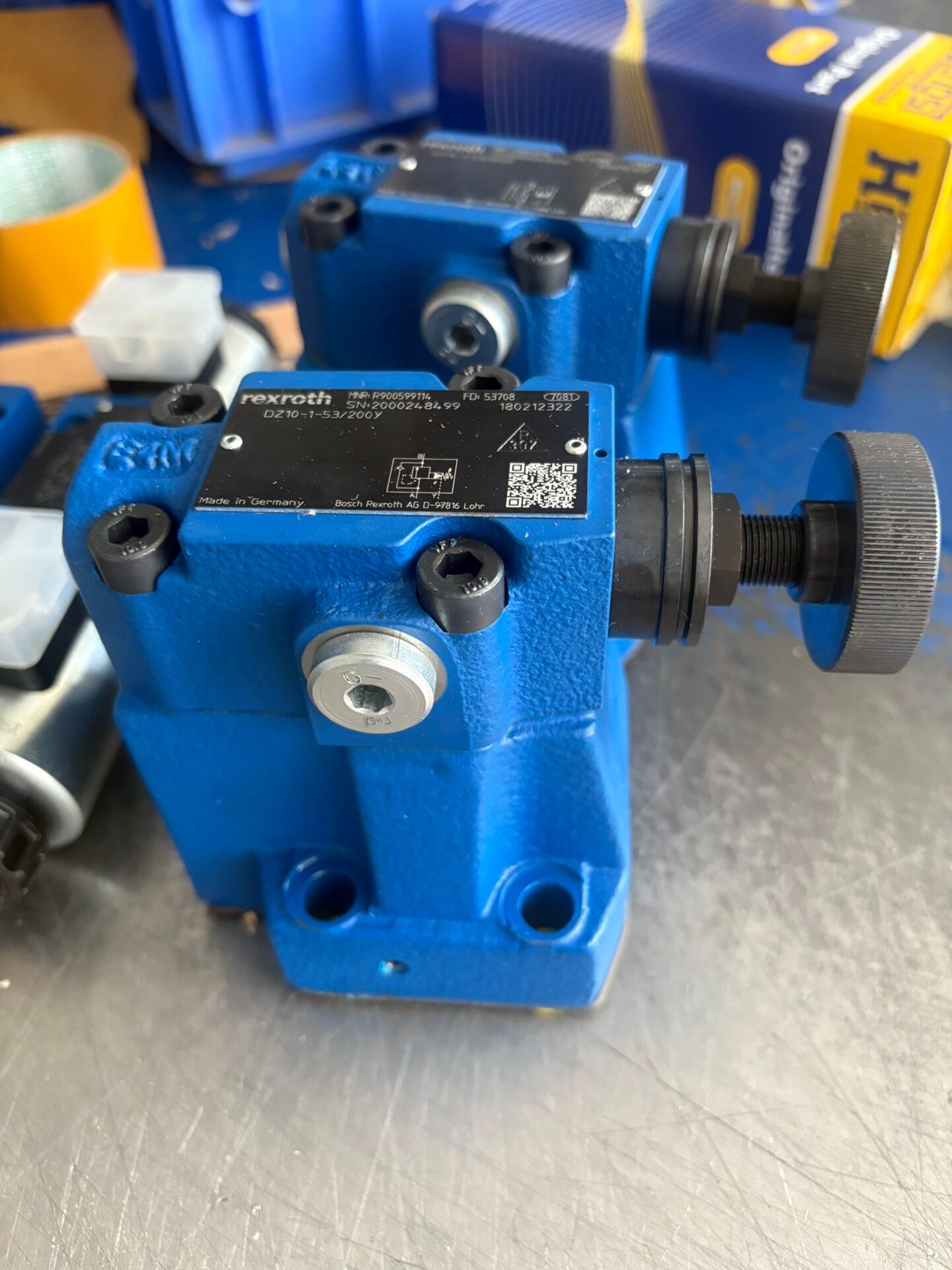 Rexroth DZ10-1-53/200Y(物料号R900599114)是一款由德国博世力士乐(Bosch Rexroth)生产的高品质液压阀,专为工业液压系统中的压力控制与调节设计。产品采用蓝色金属阀体结构,表面配备黑色参数标签,通过多个六角螺栓牢固固定,确保在高压工况下的稳定性与可靠性。