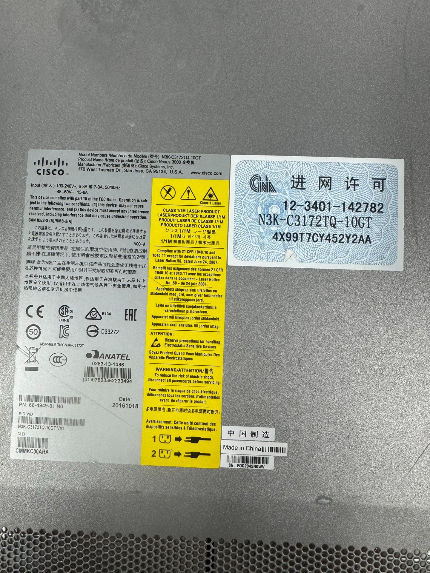 思科 Cisco N3K-C3172TQ-10GT 是一款高性能企业级机架式交换机,专为满足高带宽网络环境需求设计。设备采用灰色金属外壳,具备出色的散热性能和稳定性,适合数据中心、企业核心网络等关键场景部署。
