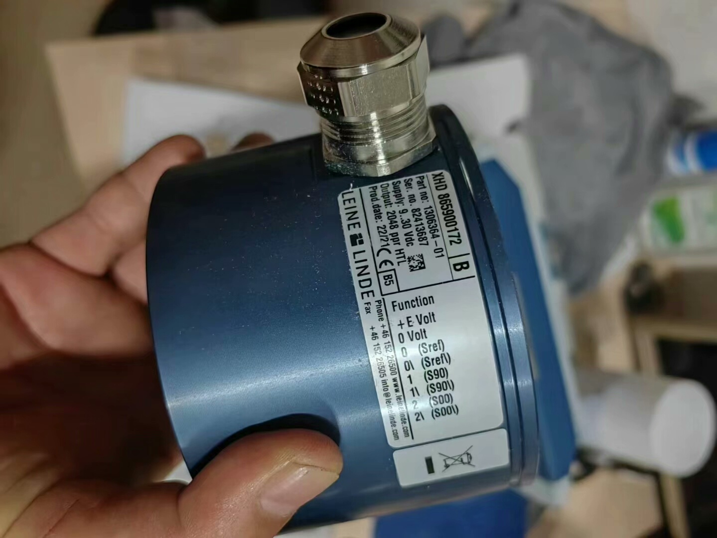 LEINE & LINDE林德865900172-2048旋转编码器为全新原装正品,采用高精度传感技术,确保对旋转运动的精确检测。蓝色圆形外壳设计,具备良好的防尘、防潮性能,适应工业现场复杂环境。法兰安装结构搭配金属固定支架,安装便捷稳固,可有效保障设备在运行过程中的稳定性。