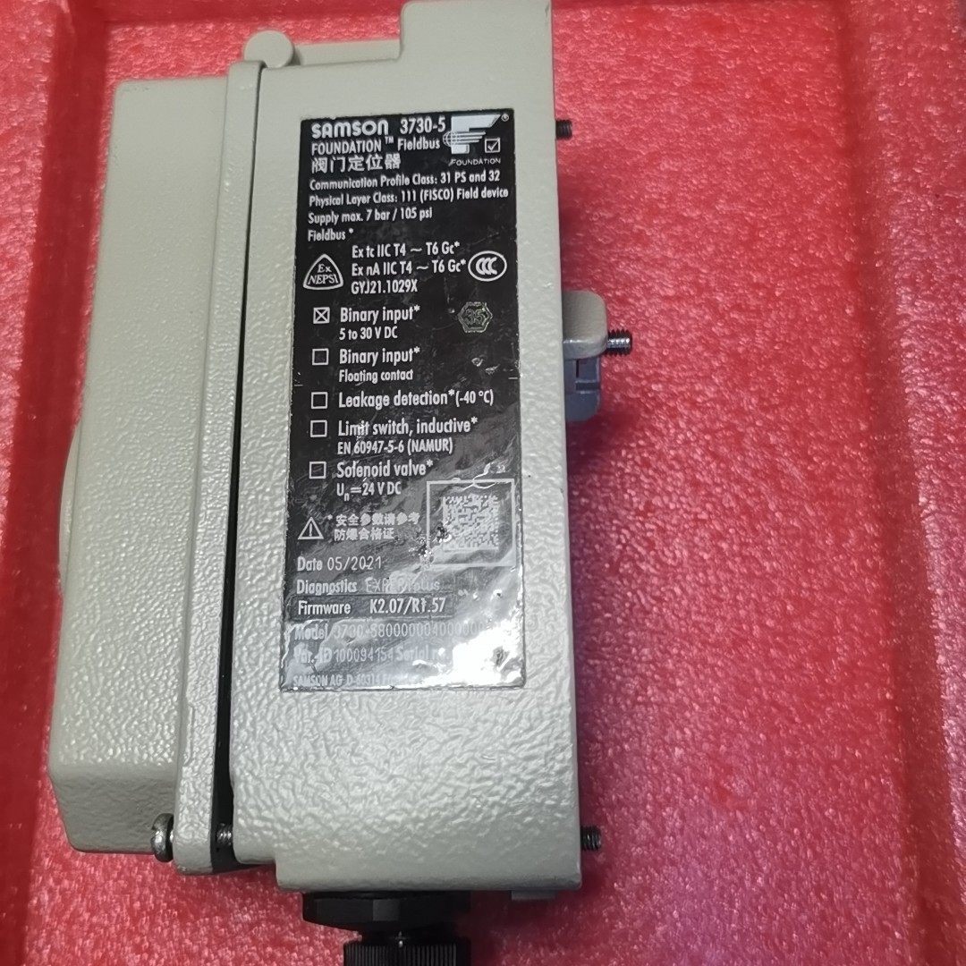 Samson 3730-5/3730-58 定位器是一款高性能的工业控制设备,专为阀门等执行机构的精确控制而设计。产品采用灰色金属外壳,结构坚固耐用,具备良好的抗干扰能力和环境适应性,适用于各类工业自动化场景。