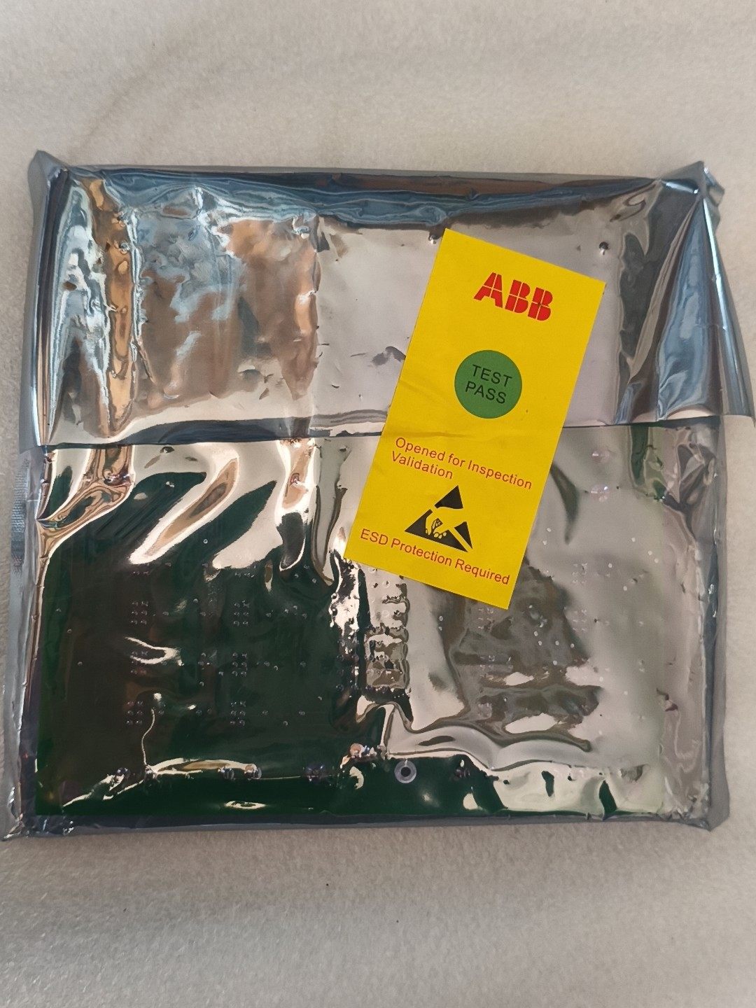 本产品为ABB品牌全新未开封端子板,包含NTDI01-A、NTRO12-A、NTDI21-A三种型号。产品通过严格测试,带有“TEST PASS”认证标签,确保性能可靠。电路板采用绿色基材,表面布满精密焊点,结构稳固,具备ESD(静电放电)保护要求,可有效防止静电对设备造成损害。