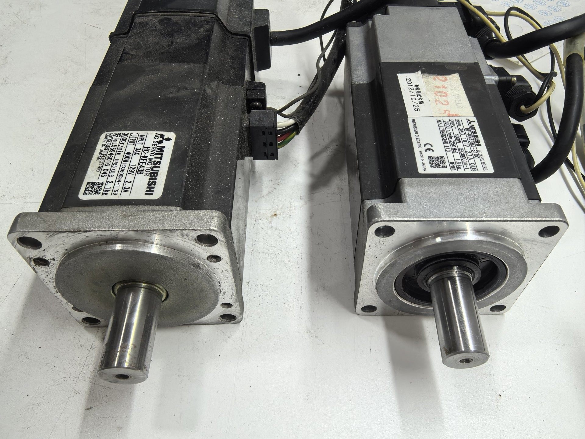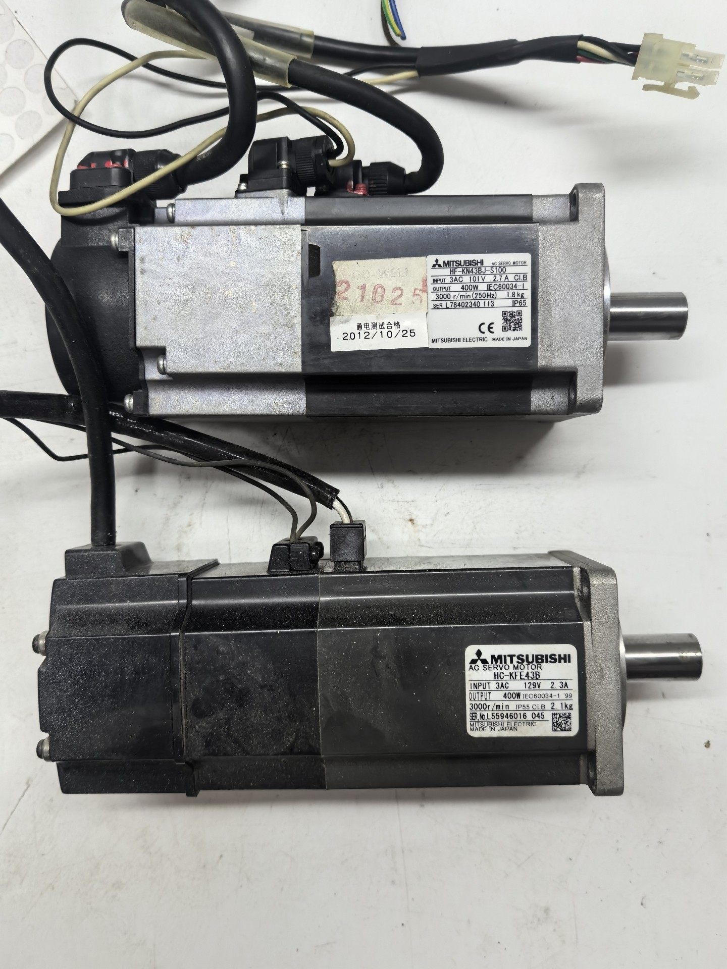 本产品为三菱电机旗下的伺服电机,包含 HC-KFE43B 和 HF-KN43BJ-S100 两种型号,实物拍摄,功能完好,适用于各类自动化设备的精密运动控制场景。