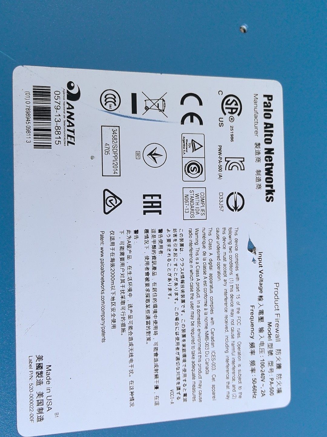 - 设备型号:PA-500