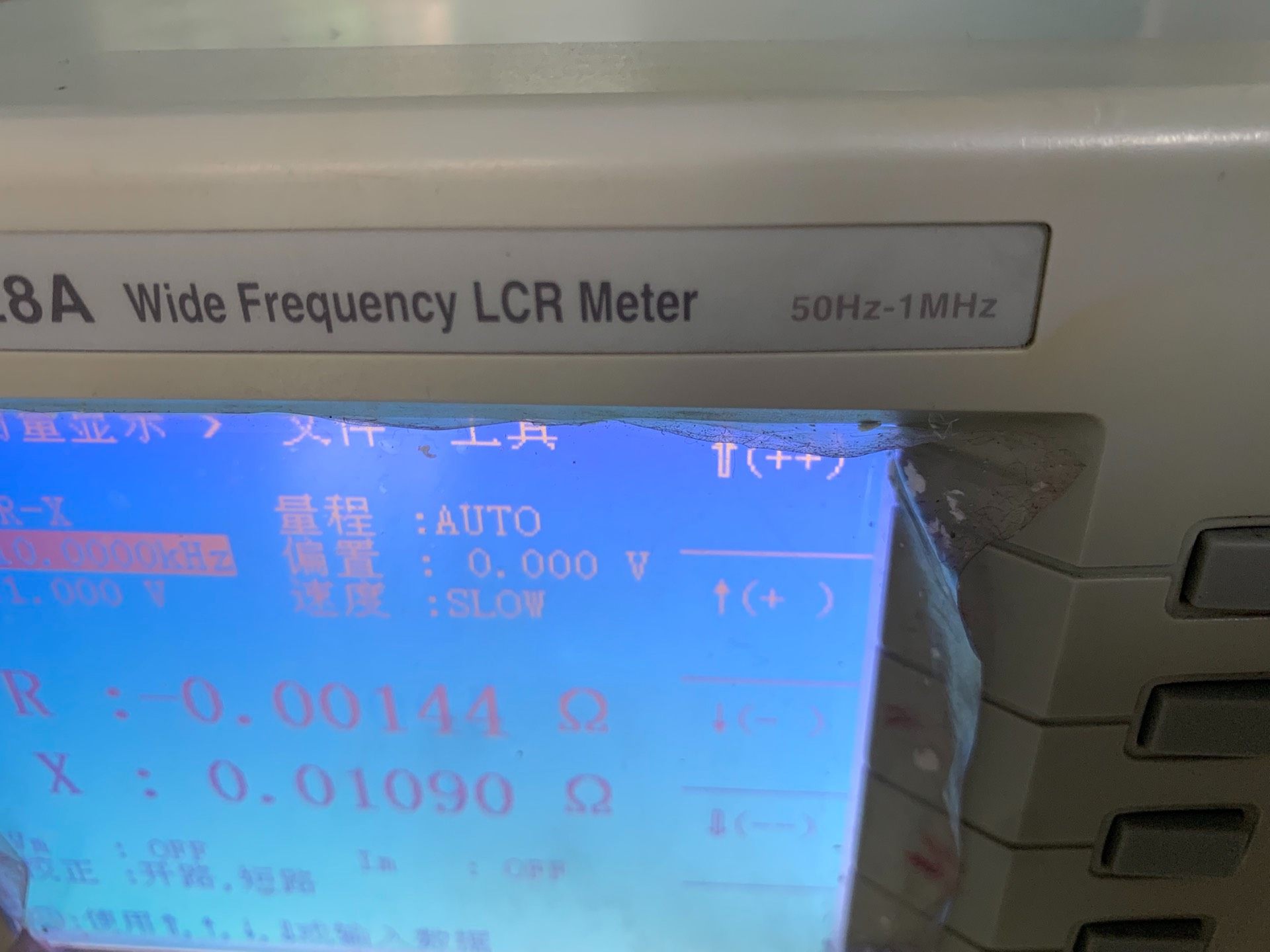 - 灵活设置功能:具备多种测量模式(如R-X模式)、测试电平调节(支持1.000V等设置)及测量速度选择(SLOW模式等),适应不同场景需求。