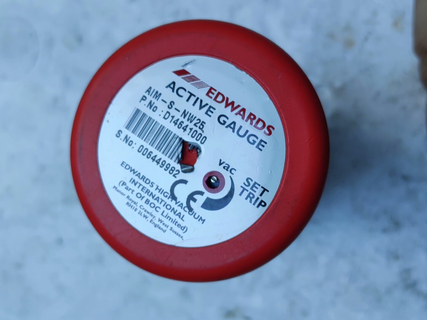 Edwards AM-S-NW25 真空计是一款主动式真空测量仪表,由英国Edwards公司生产,适用于各类真空系统中真空度的精确监测。本产品为拆机件,外观呈红色圆柱形,成色如图所示,性能稳定可靠,是工业真空系统维护与升级的理想选择。