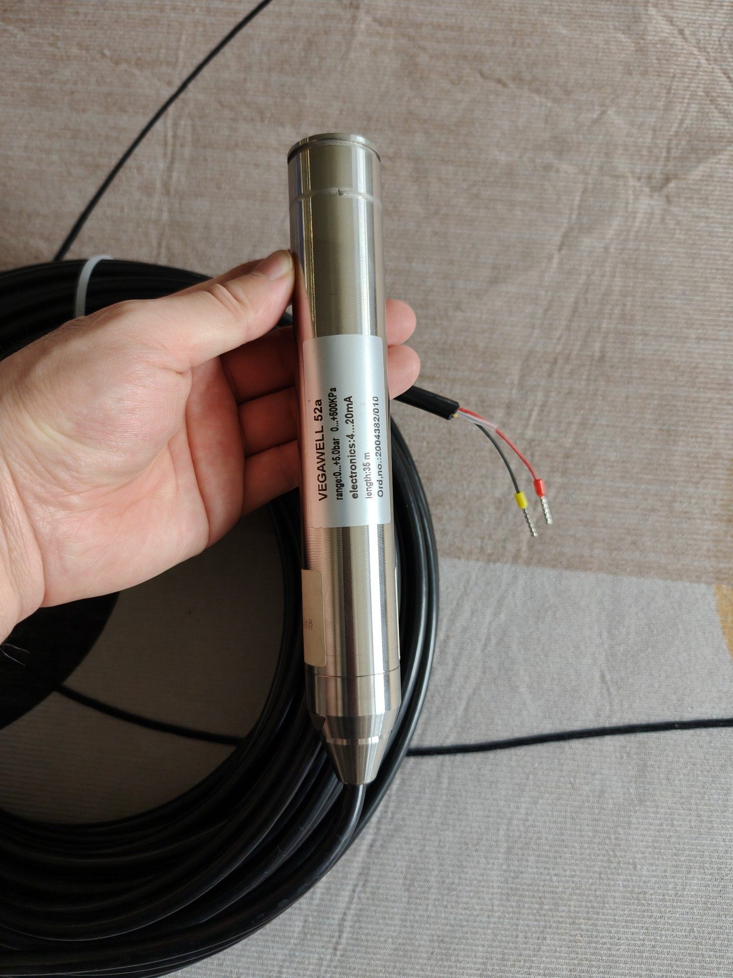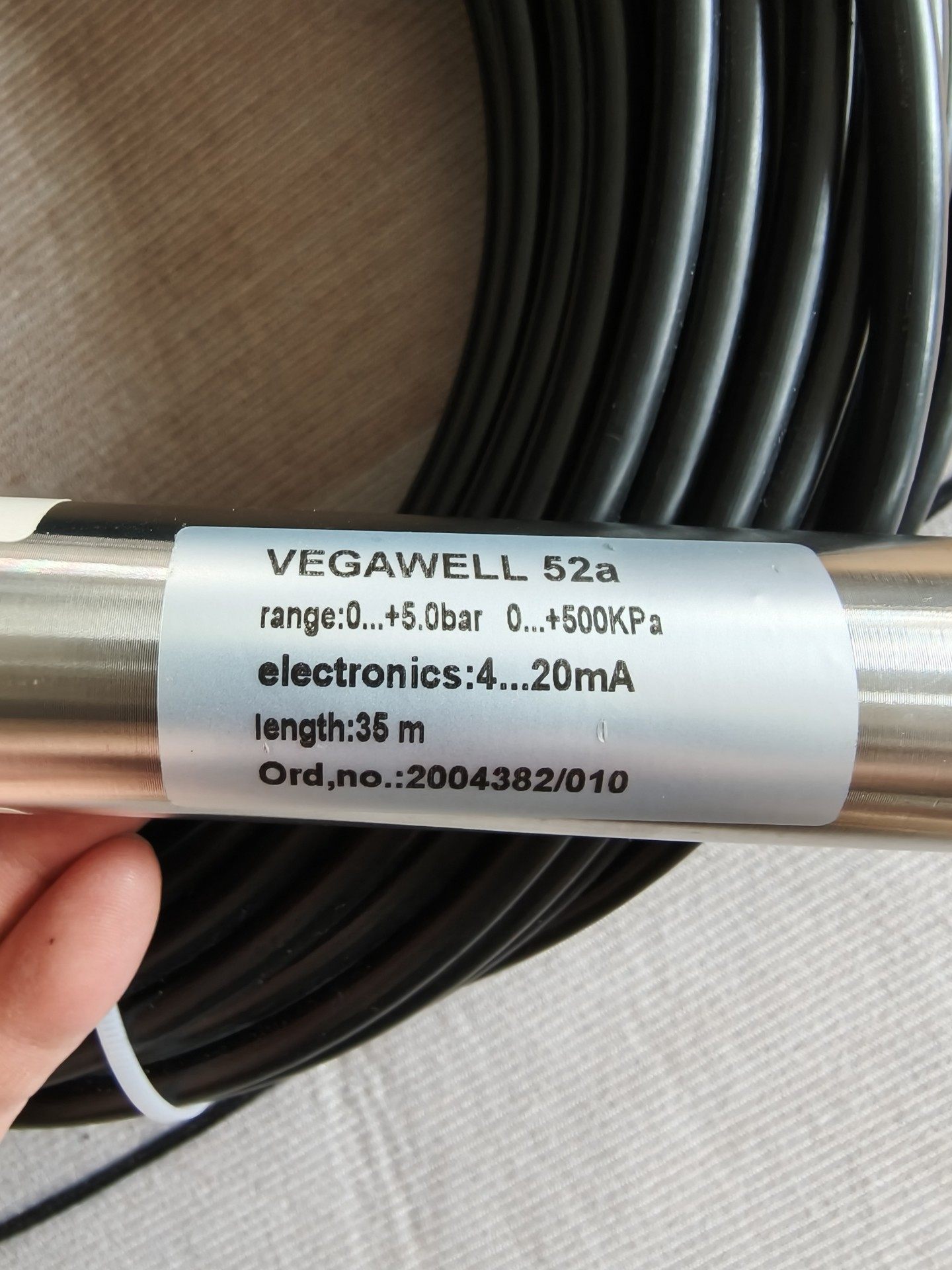 - 耐用设计:探头采用银色金属材质,具备良好的耐腐蚀性和机械强度,适应复杂工业环境;配备35米长的黑色电缆,便于远距离安装和信号传输。