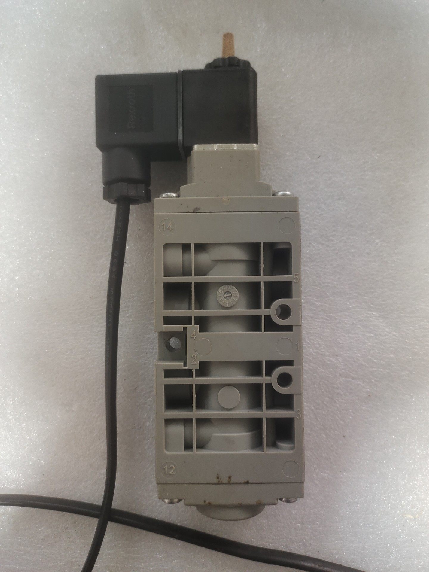 - 结构设计:采用灰色阀体,顶部集成黑色电磁线圈组件,配备连接电缆,底部设有多个标准化接口(标注1、2、4、12等接口编号),便于系统集成与安装。