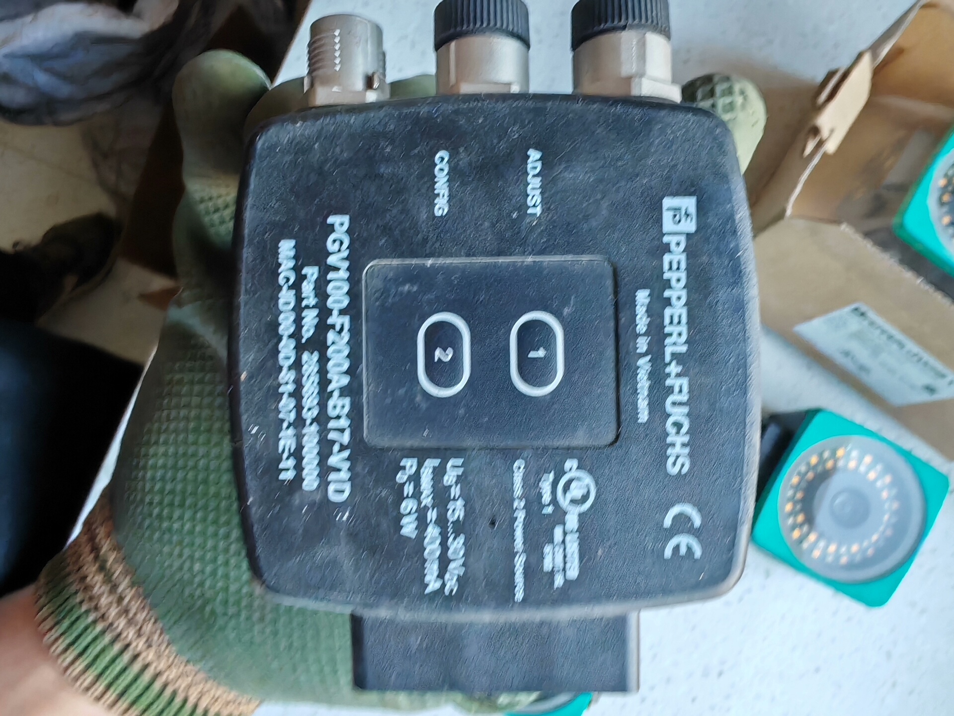 倍加福PGV100-F200A-B17-V1D工业视觉智能相机,采用方形绿色外壳设计,结构紧凑,中央配备高性能镜头,周围环绕LED光源,确保在工业环境中实现清晰稳定的图像采集。该产品为工程剩余全新原装正品,实物图拍摄,品质可靠。