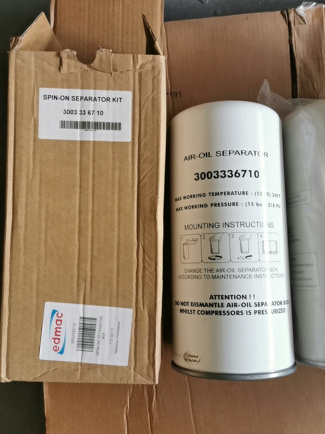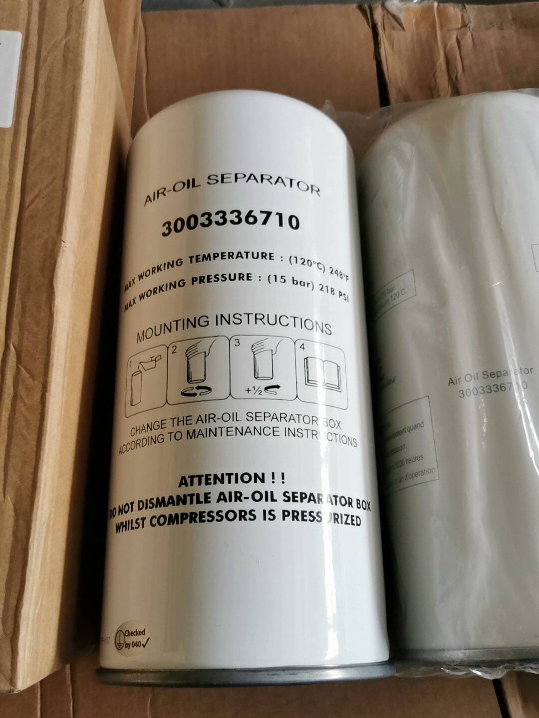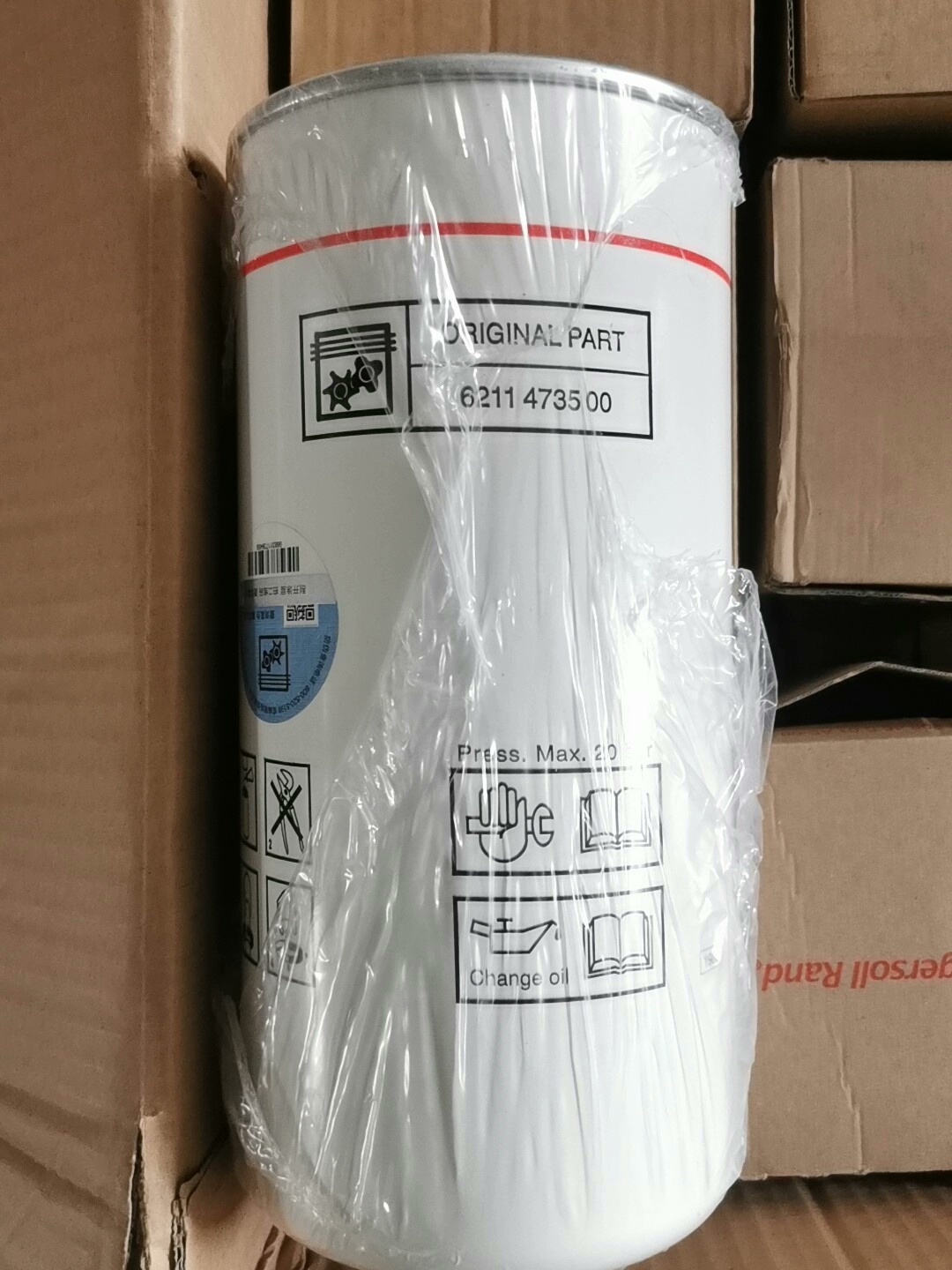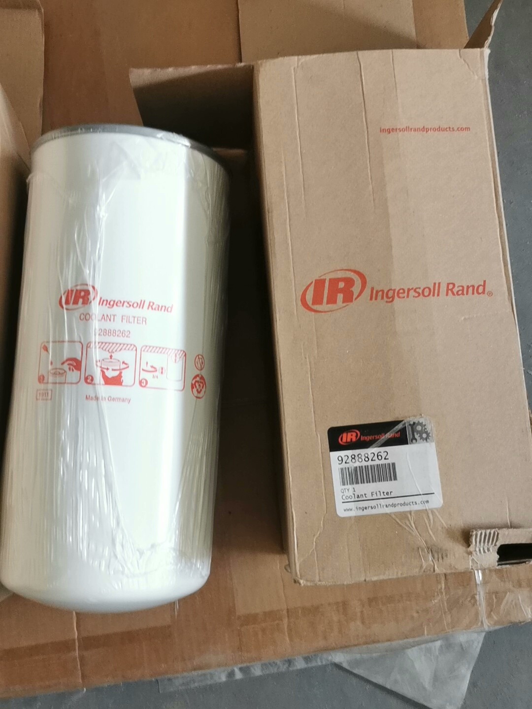 本产品为英格索兰、阿特拉斯等品牌空压机专用滤芯,包含油滤及油气分离器,采用纯原厂工艺制造,确保过滤精度与使用寿命。滤芯外壳为圆柱形结构,部分产品带有塑料保护膜,防止运输过程中污染。原厂包装盒设计规范,标识清晰,便于产品识别与追溯。