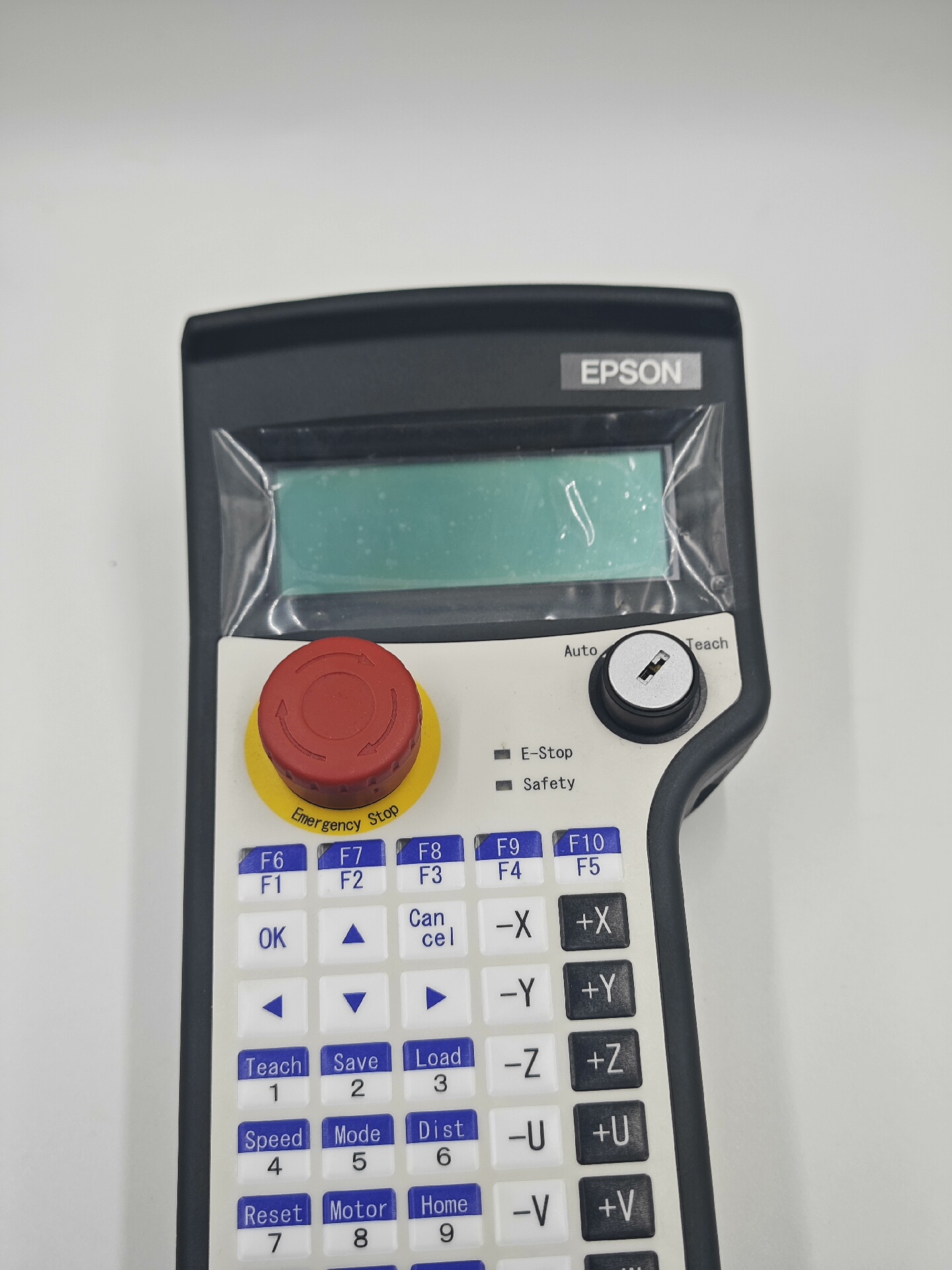- 便捷操作界面:配备清晰显示屏及布局合理的功能按键区,包含方向控制键(±X、±Y、±Z等)、模式切换键(Teach/Auto)、急停按钮(Emergency Stop)等,操作直观高效。