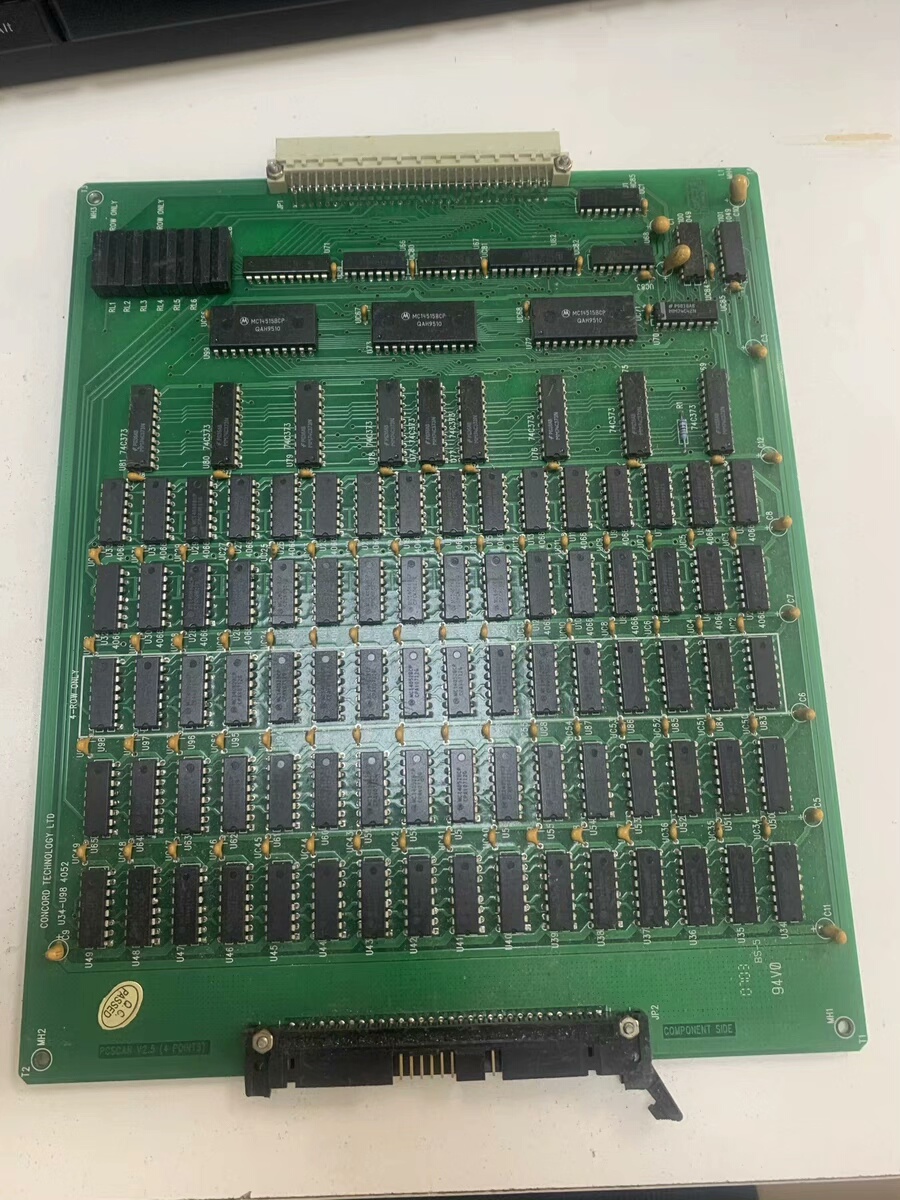 PCSCAN V2.5 (4 POINTS) T323-S是一款应用于工业控制领域的专用模块,采用绿色单面板设计,集成了多种逻辑芯片及电子元件,具备信号处理与数据采集功能,适用于自动化设备的控制信号传输与状态监测。