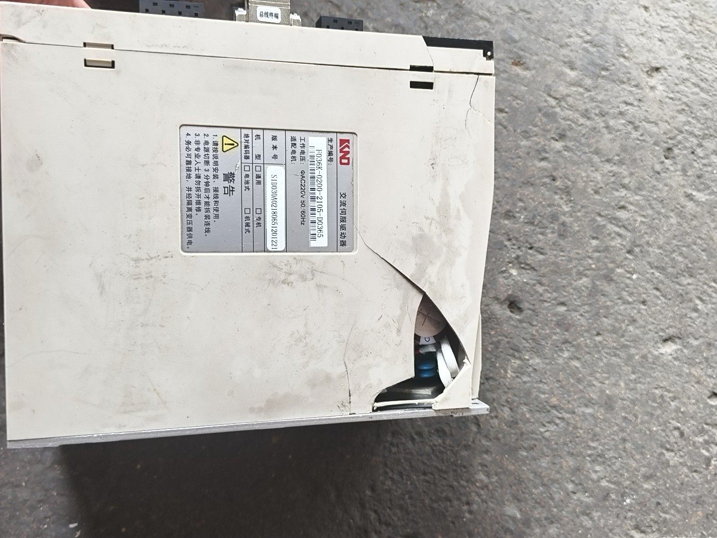 由于外壳存在破损,安装时需注意保护内部元件,避免进一步损伤。建议专业人员进行安装调试,确保设备正常运行。