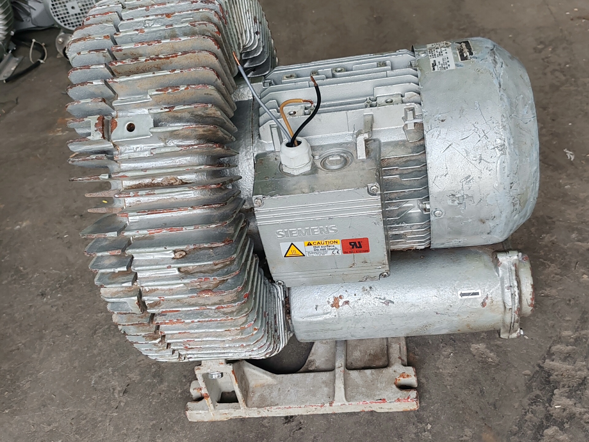 本产品为西门子品牌旋涡风机增氧机,采用三相380V供电,额定功率5.5千瓦,口径75mm,适用于需要高效气体输送或水体增氧的工业及农业场景。设备主体为金属材质,外壳设计有密集散热片,确保长时间运行时的散热效果,底部配备安装底座,便于固定安装。