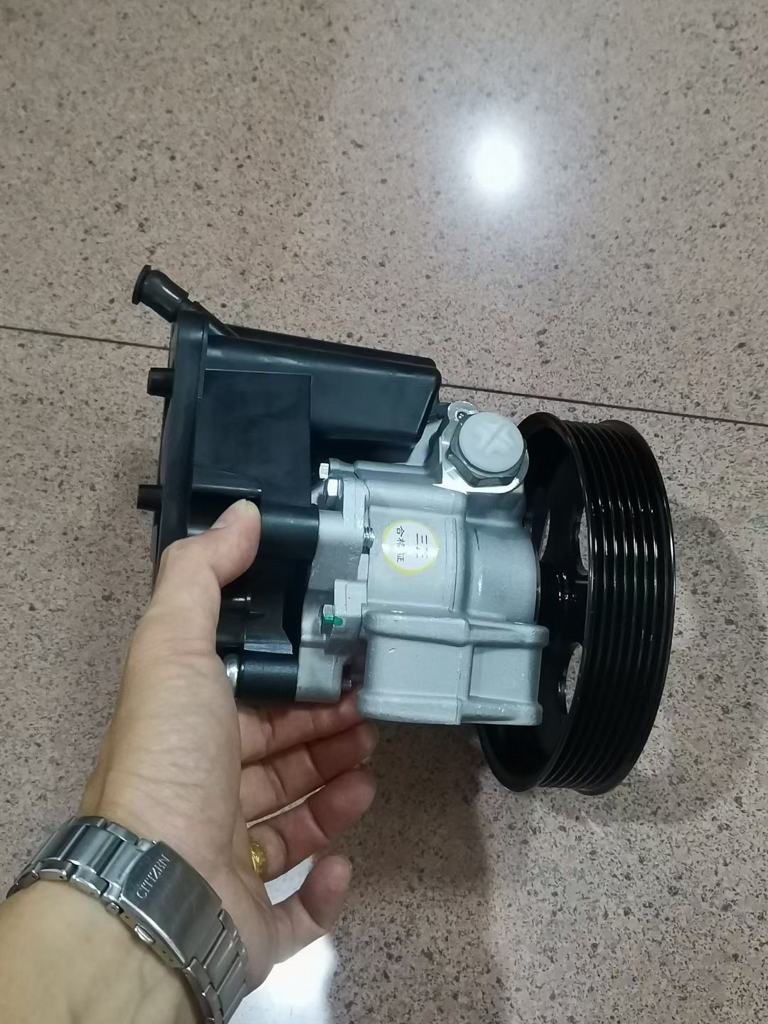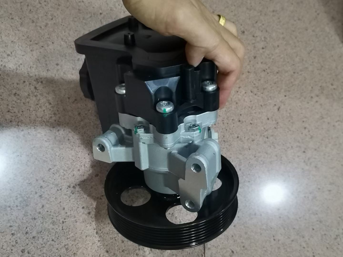 奔驰C200 W204液压助力泵(型号A0034664301)是专为奔驰C200 W204车型设计的转向助力核心部件。产品采用高强度银色金属材质打造,结构紧凑,集成黑色多槽皮带轮,确保与发动机传动系统稳定连接,高效传递动力。自带油壶设计,方便液压油的存储与循环,保障助力系统持续稳定运行。
