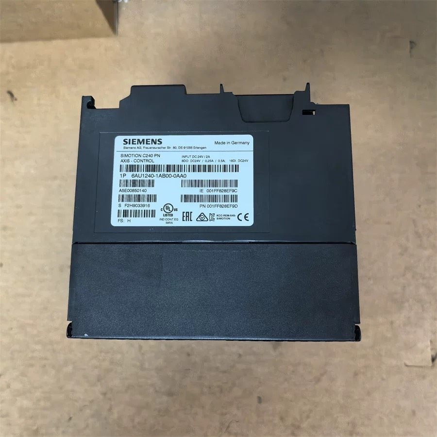西门子SIMOTION C240 PN(型号6AU1240-1AB00-0AA0)是一款紧凑型运动控制器,专为复杂运动控制任务设计,集成了逻辑控制与运动控制功能,适用于各类自动化生产设备。设备整体呈黑色工业级塑料外壳,结构紧凑,便于安装在标准控制柜中,支持PROFINET通信,满足工业现场高速数据传输需求。