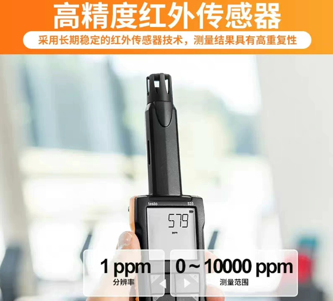 德图testo 535二氧化碳检测仪是一款专业的便携式气体检测仪器,专为精准测量环境中二氧化碳浓度而设计,广泛应用于室内空气质量监测、通风系统评估等场景。