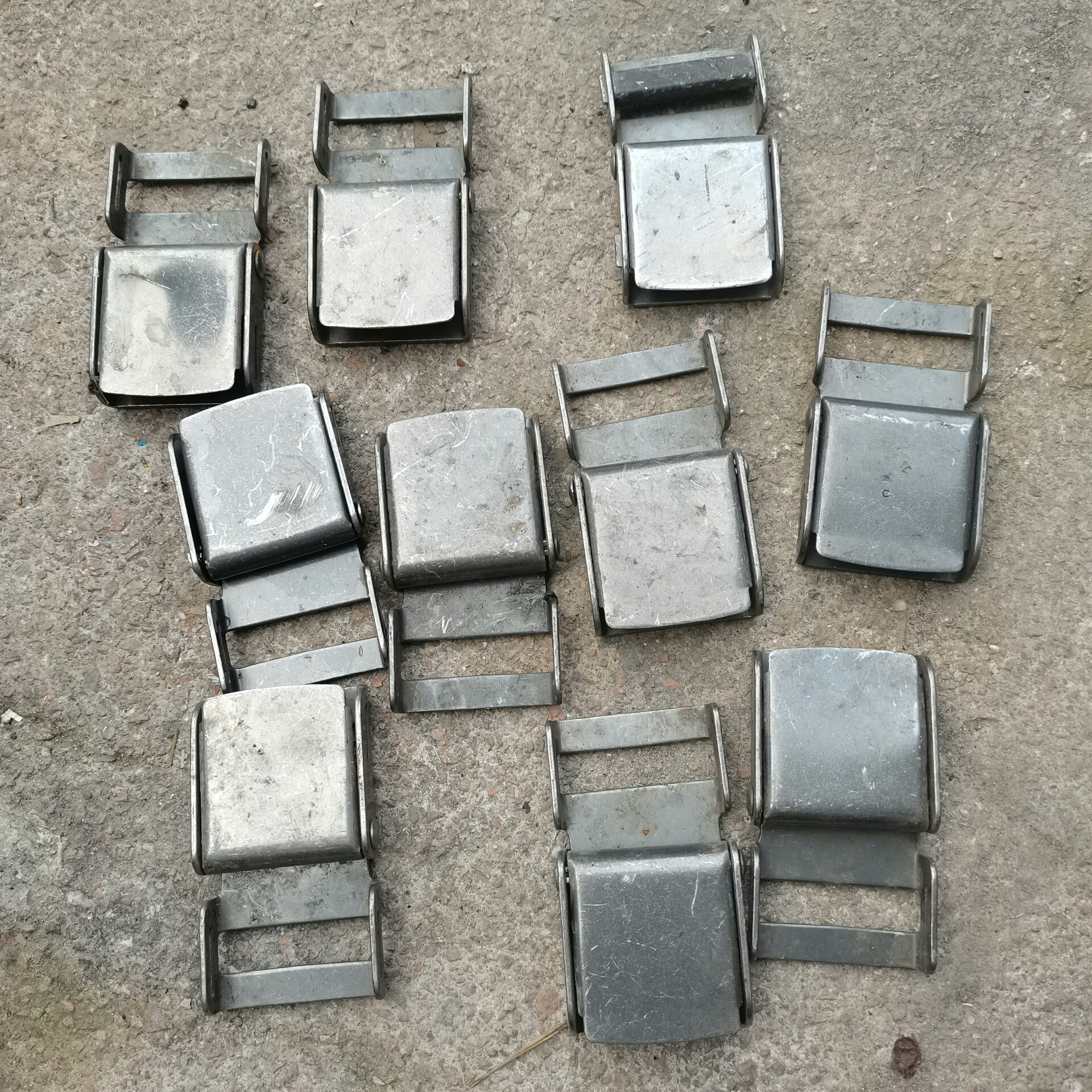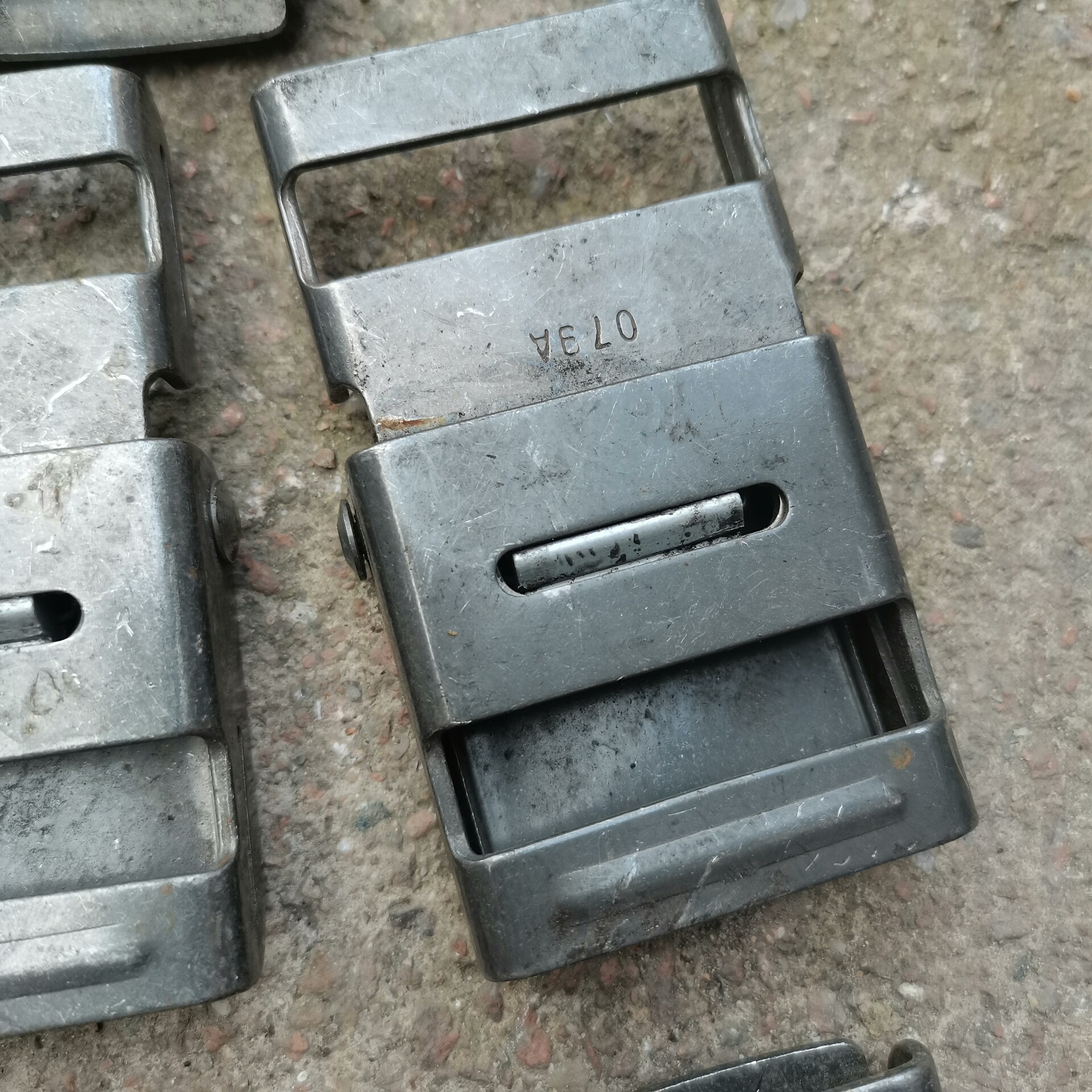 本产品为飞机飞行员安全扣,属于航空安全配件范畴,适用于飞行员座椅或安全带的固定系统。产品采用金属材质制造,整体呈银灰色,表面刻有型号标识,包括079A、073A、VE10、V190等多种型号。