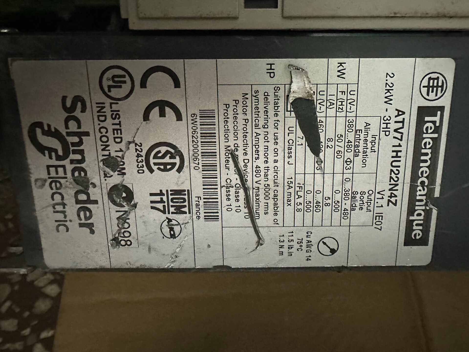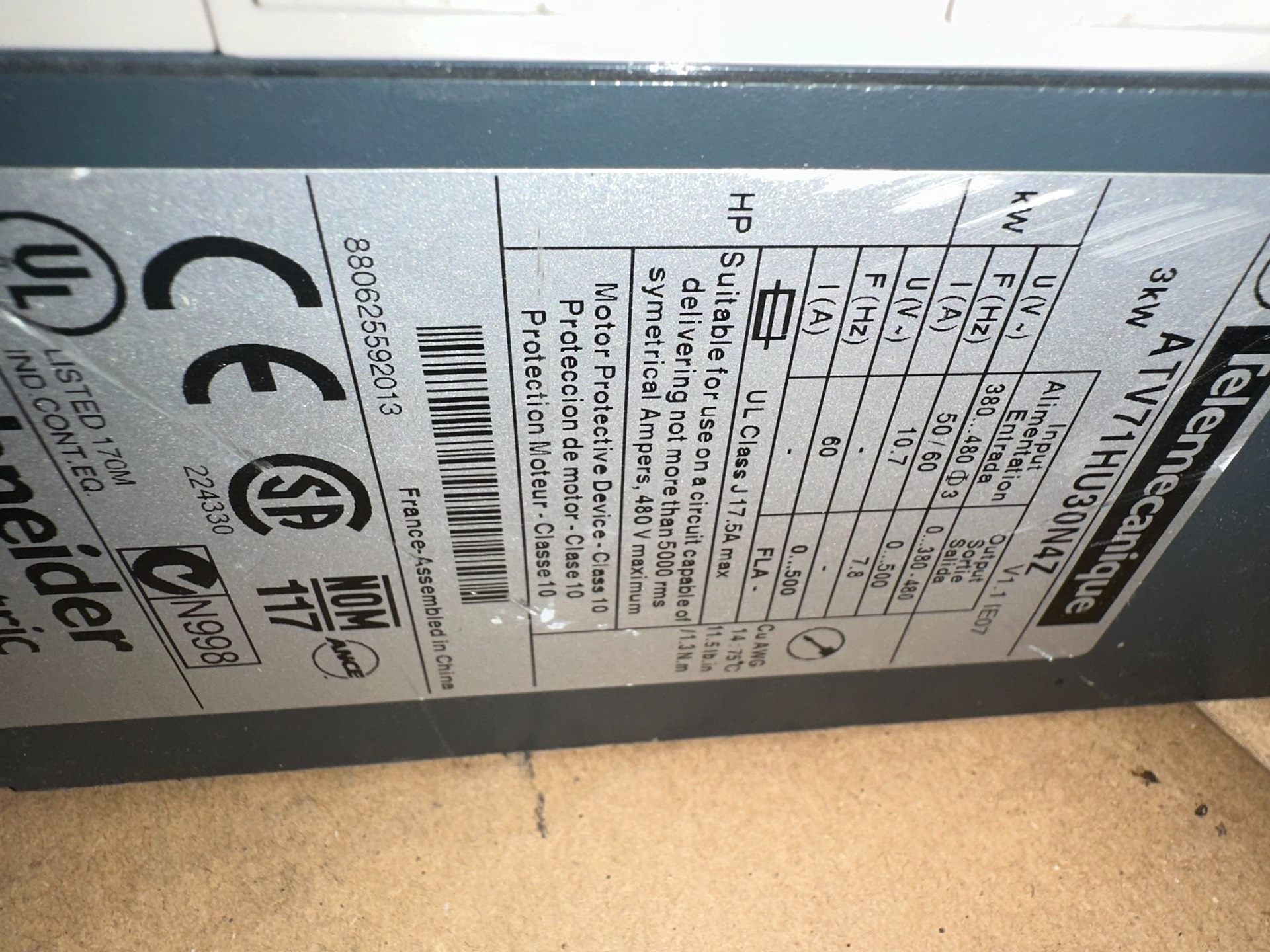 本批产品为施耐德ATV71系列拆机变频器,共计9台,包含多种功率规格及1台配件机,适用于工业自动化领域的电机调速控制。