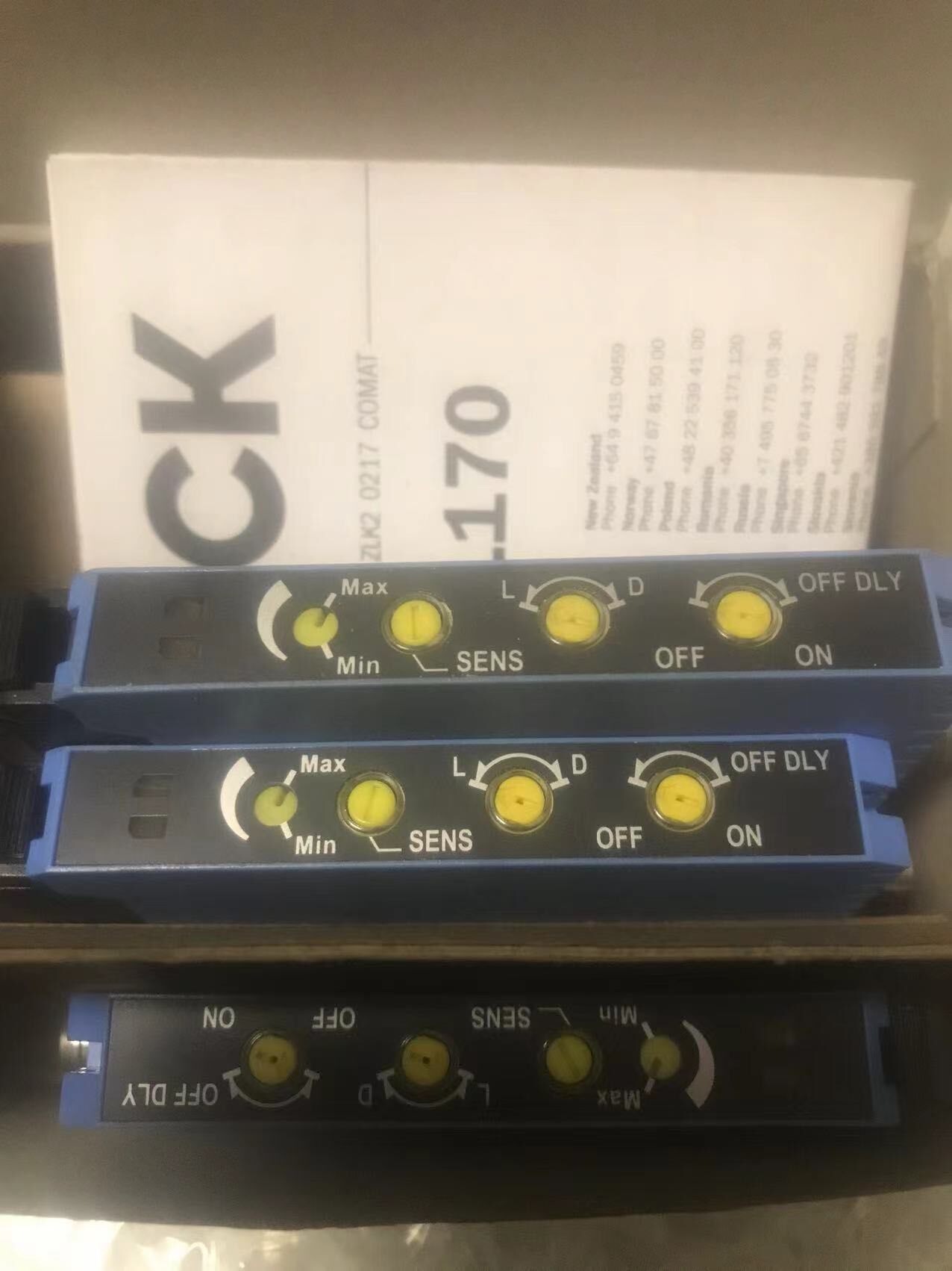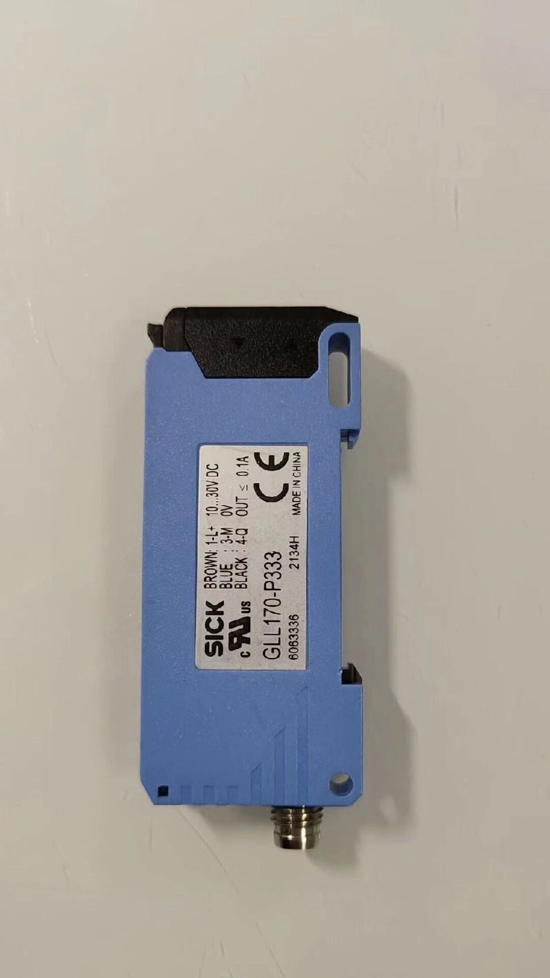 本产品为SICK品牌旗下的GLL170-P333型号放大器,是工业自动化领域中用于信号处理与放大的关键组件。产品采用蓝色外壳设计,外观简洁耐用,标签信息清晰,包含型号、序列号(6 063 336)、生产批次(2034H 19629)等关键标识,并通过CE、EAC等多项认证,确保产品质量与安全性,中国制造。