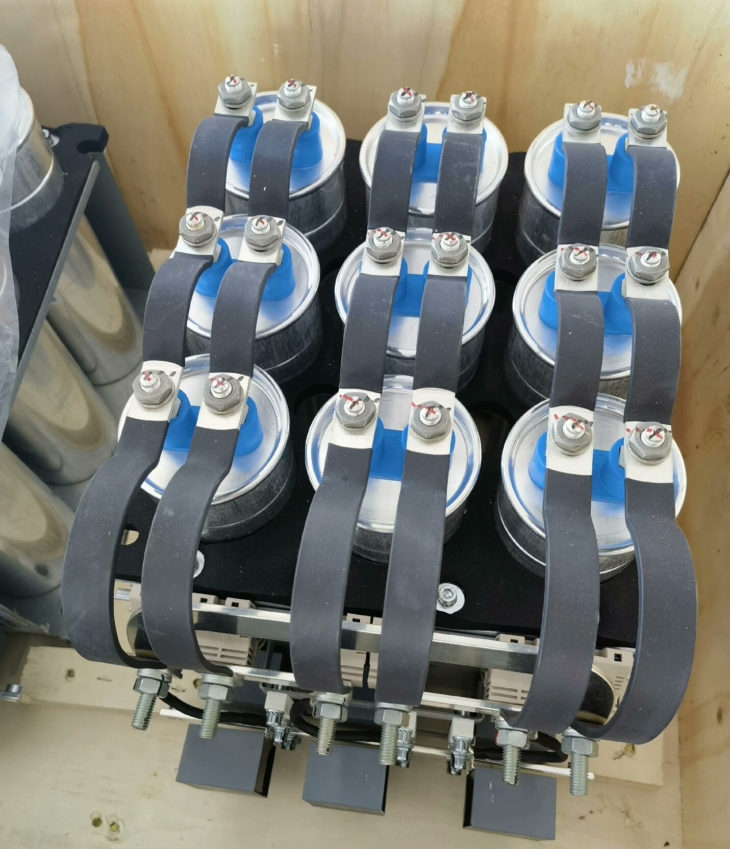 金风 Switch 滤波电容组是一款全新原装的电力电子设备,主要用于电力系统中滤除谐波、稳定电压,提升电能质量。该电容组包含9个大电容和6个小电容,通过金属支架与白色绝缘块固定,结构紧凑,连接黑色电缆,安装便捷,适用于工业自动化、新能源等领域的电力滤波场景。