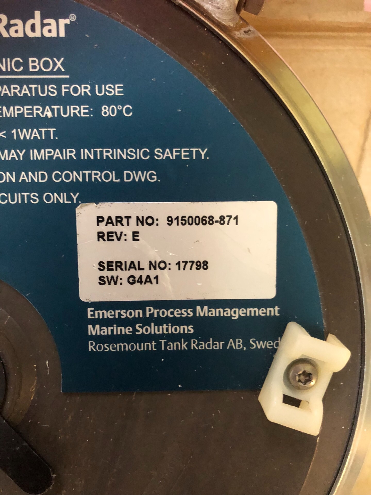 - 制造商:Emerson Process Management Marine Solutions Rosemount Tank Radar AB, Sweden