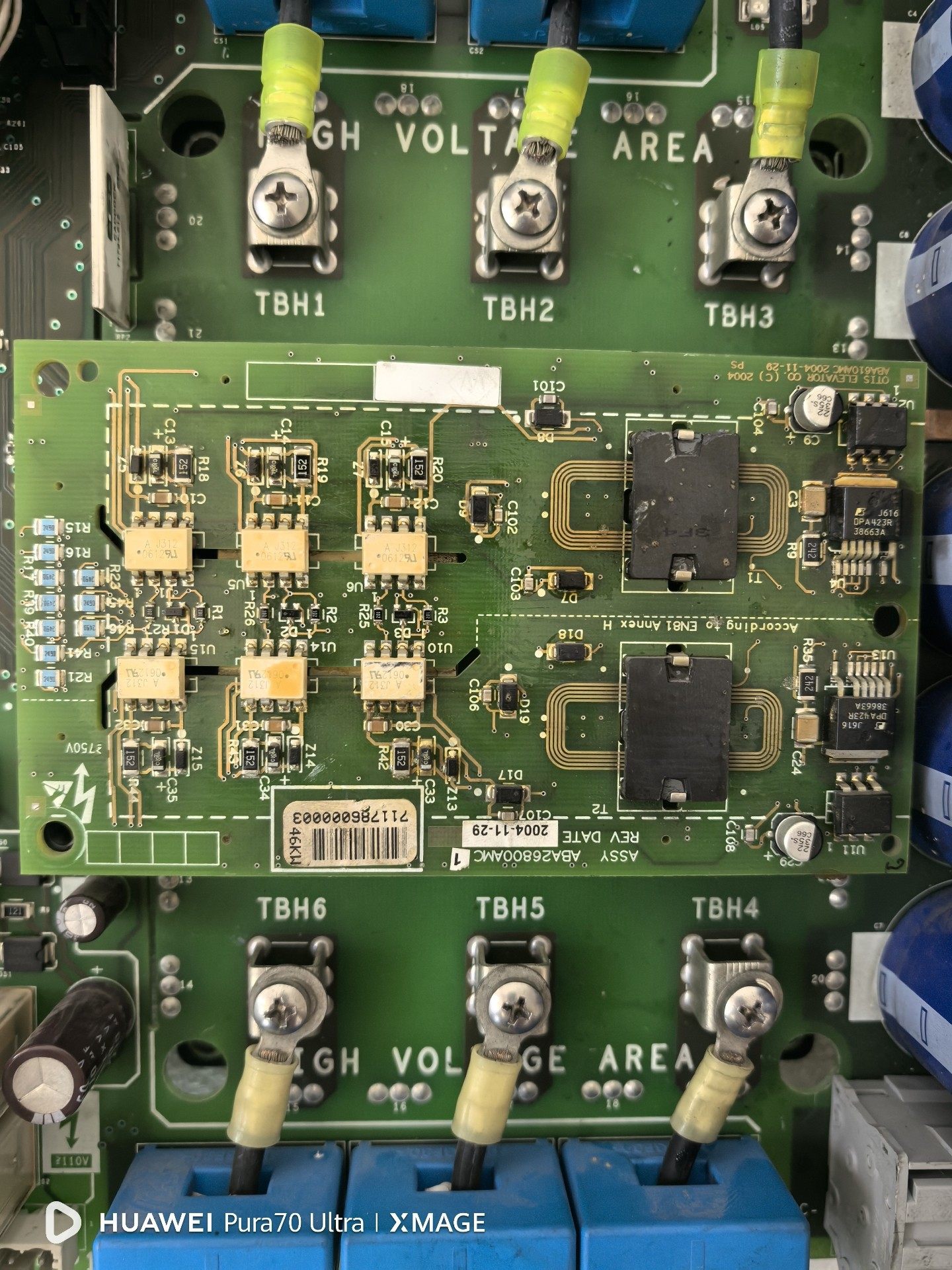 驱动板上集成了多个关键组件,如高压电容、变压器、IGBT模块、控制芯片以及多种接口,能够实现对电梯电机的精确调速与控制。其设计紧凑,散热良好,适合长时间连续工作。