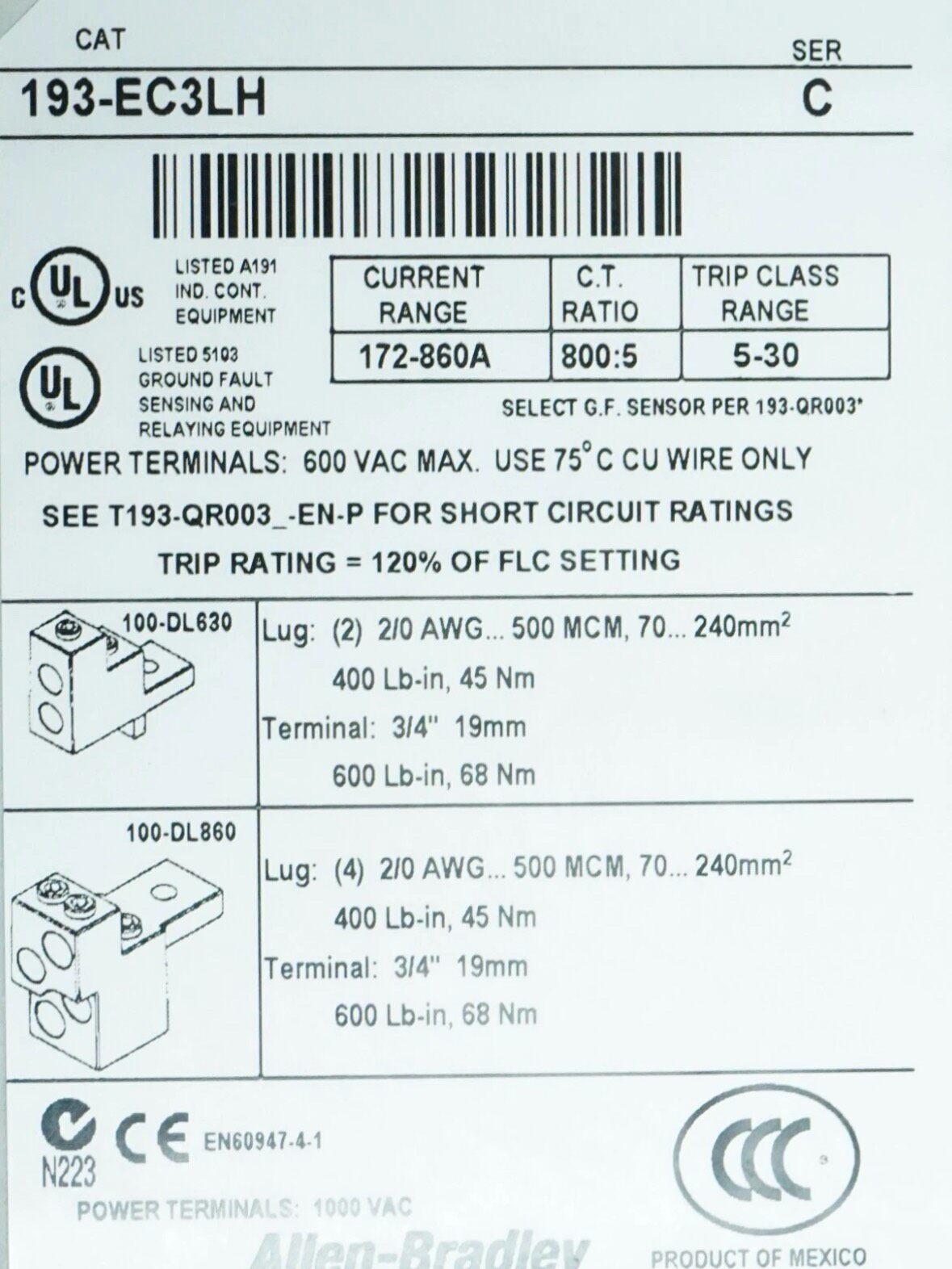 Allen-Bradley 193-EC3LH是一款集成E3 Plus控制模块的电动机保护器,专为工业电机的安全运行设计。产品采用灰色三极结构,具备可靠的过载、过流等故障保护功能,广泛应用于各类工业自动化系统中。
