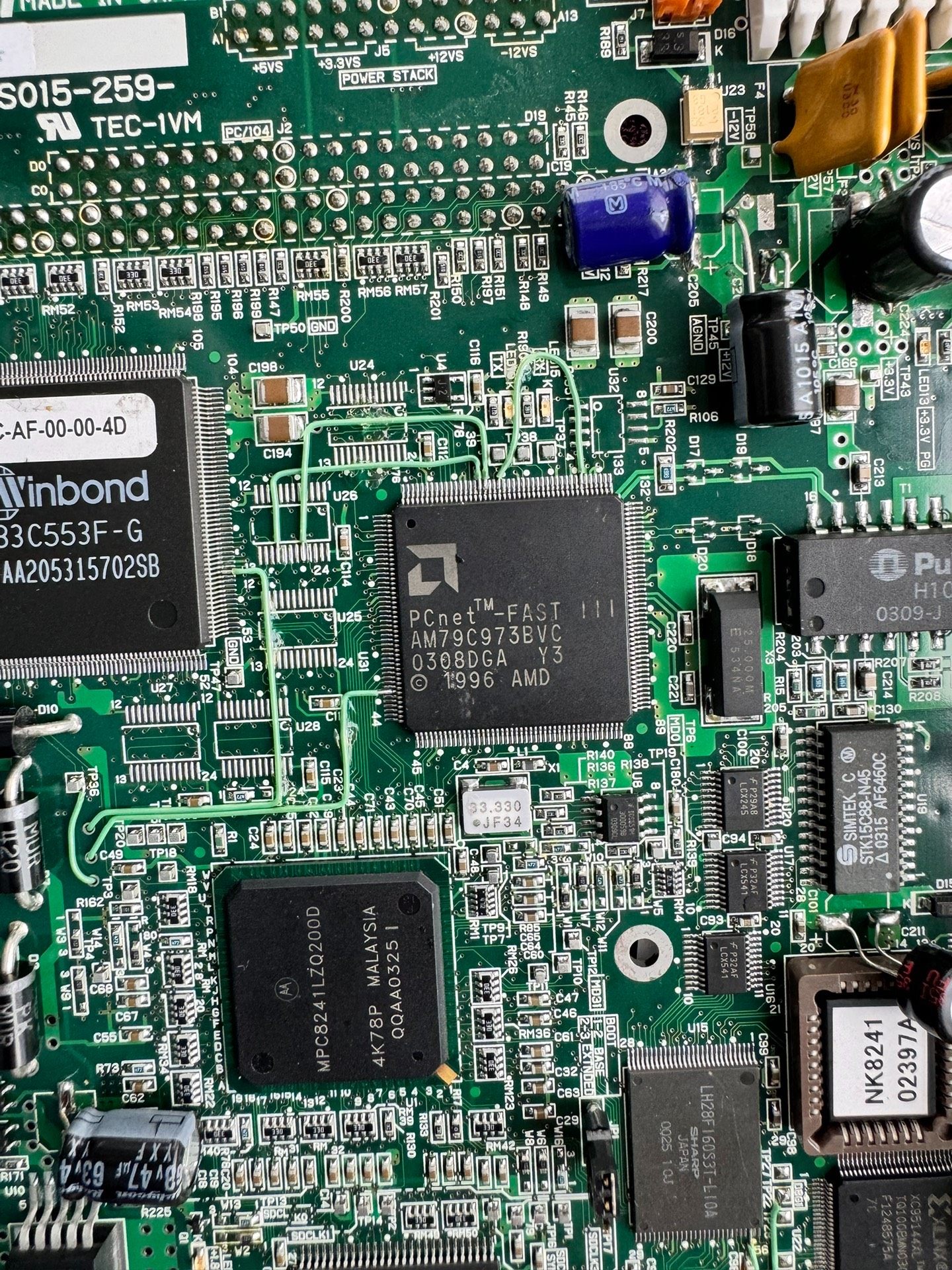 - 芯片型号:Winbond W83C553F-G, AMD Am79C973BVC, Pulse H1081