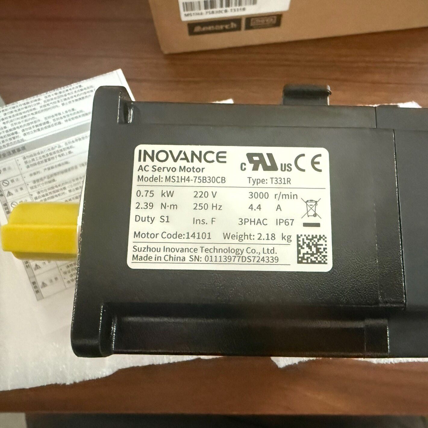 汇川MS1H4-75B30CB-T331R伺服电机是一款全新原装正品工业控制设备,专为高精度、高可靠性的自动化系统设计。产品外包装为棕色纸箱,清晰印有品牌标识“INOVANCE”及详细型号标签,确保盒码一致,品质有保障。