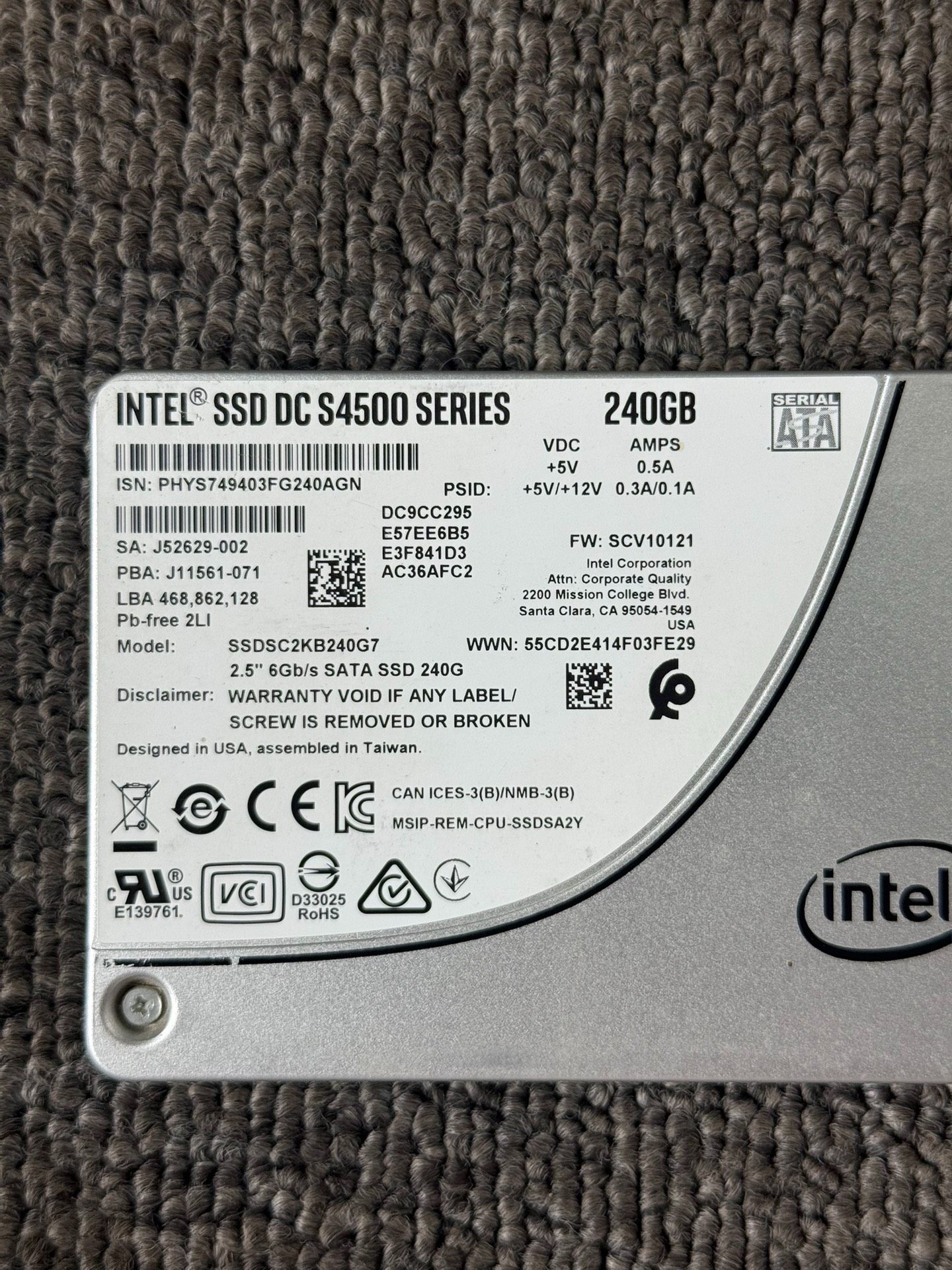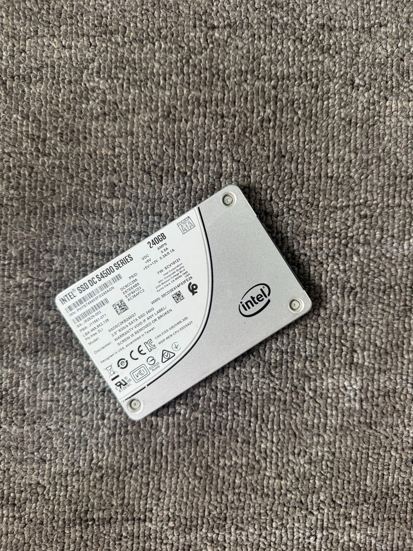 这款产品是英特尔(Intel)推出的S4500系列240GB SATA固态硬盘,专为数据中心和企业级应用设计,具备高可靠性与出色的读写性能。