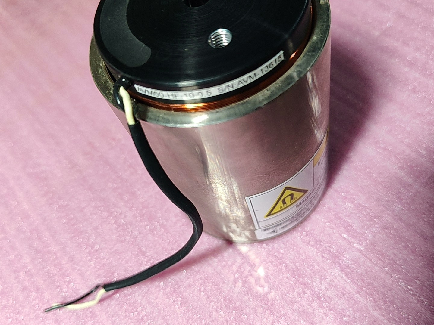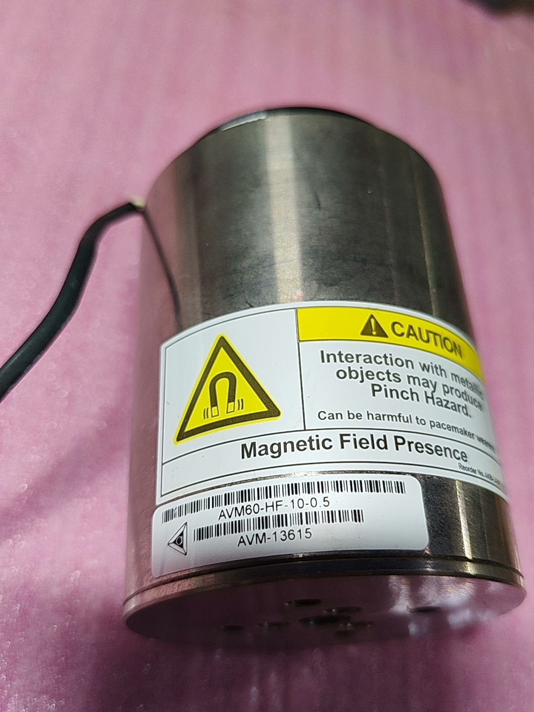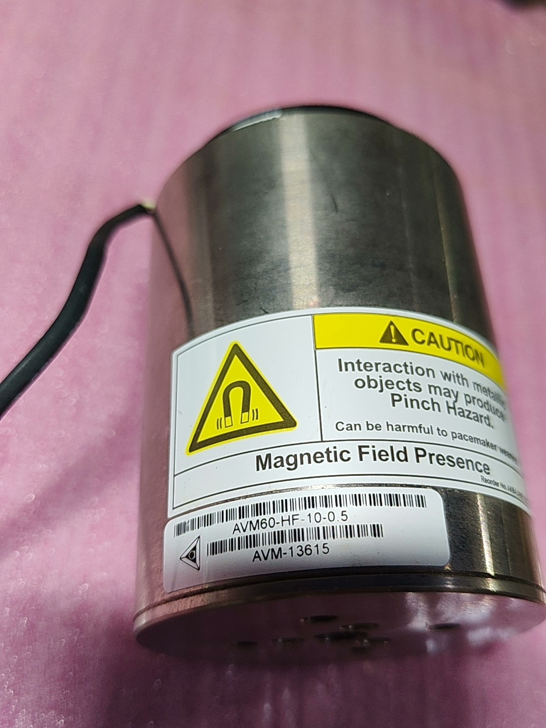 根据产品标签信息,型号为AVM60-HF-10-0.5,具体技术参数(如额定电压、电流、推力、行程等)需参考原厂手册,本产品为二手拆机,外观及功能以实物为准。