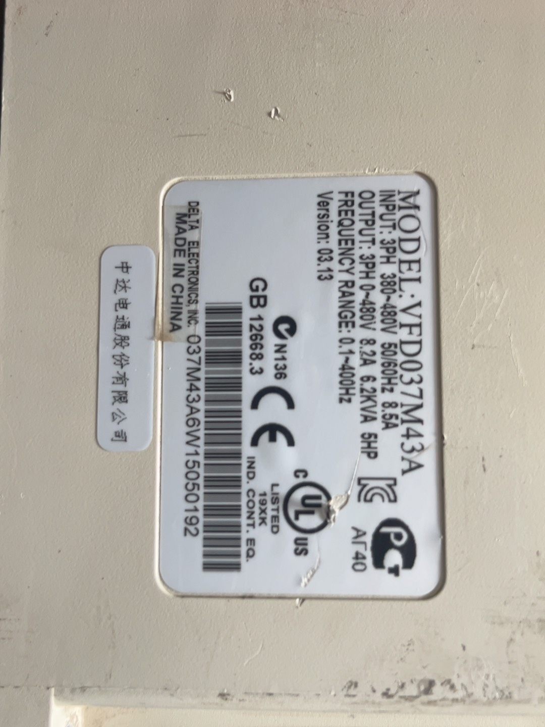 - 型号:VFD037M43A