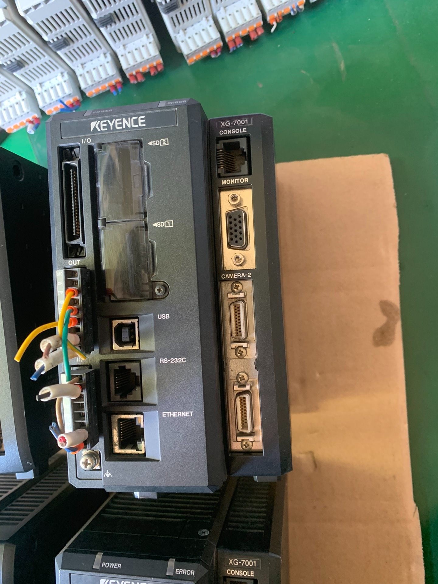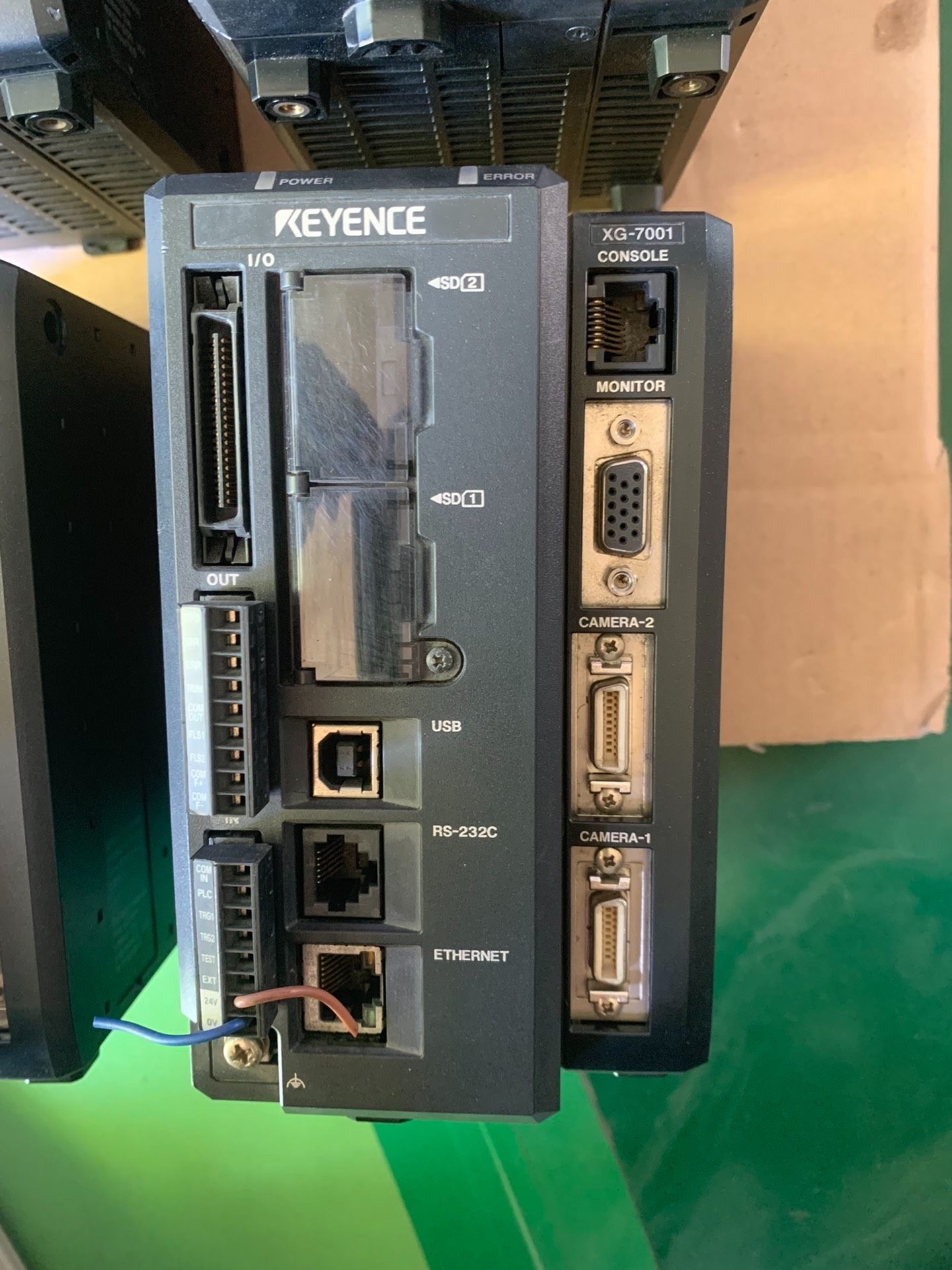 基恩士XG-7001工业视觉控制器是一款高性能机器视觉系统核心设备,采用紧凑式黑色外壳设计,集成多种通信接口,包括USB、RS-232C、ETHERNET以太网接口,以及CAMERA-A1、CAMERA-A2双相机接口,支持多相机同步采集与高速图像处理,满足工业现场复杂检测需求。设备经过测试,功能完好,成色如图所示,适合各类自动化生产线的视觉检测应用。