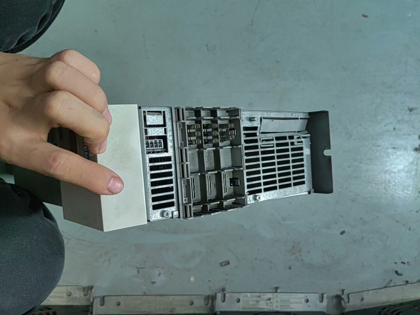 实物拍摄显示,该变频器外观成色良好,表面无明显划痕或损坏,功能完好,无需维修,可直接投入使用。