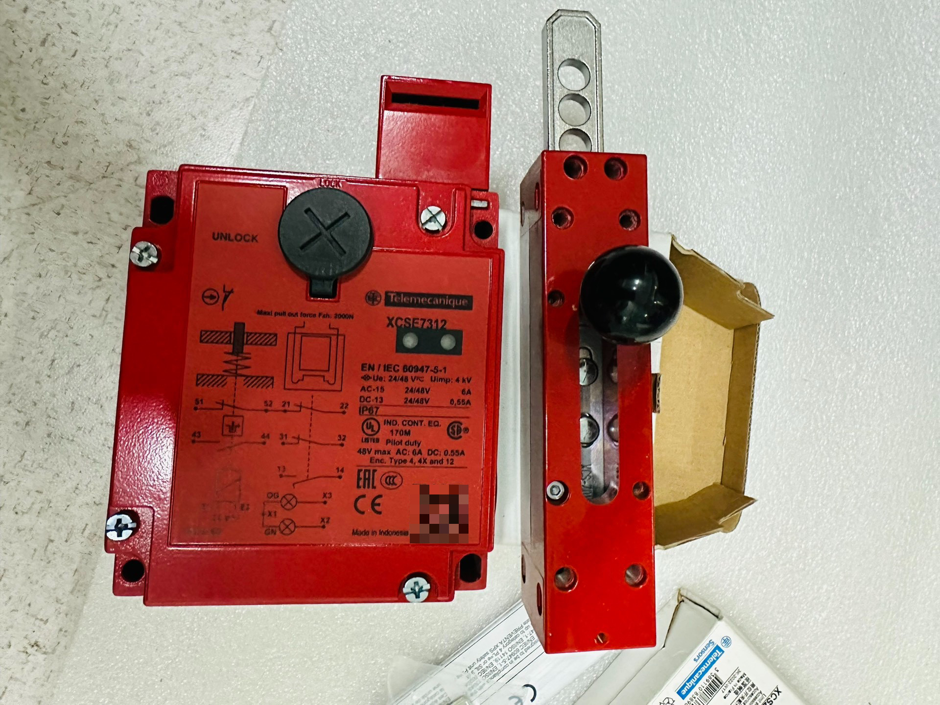 本产品为施耐德(Schneider Electric)生产的XCSE7312安全限位开关,配套XCSZ05配件,专为工业自动化设备设计,用于确保机械运动过程中的安全防护。