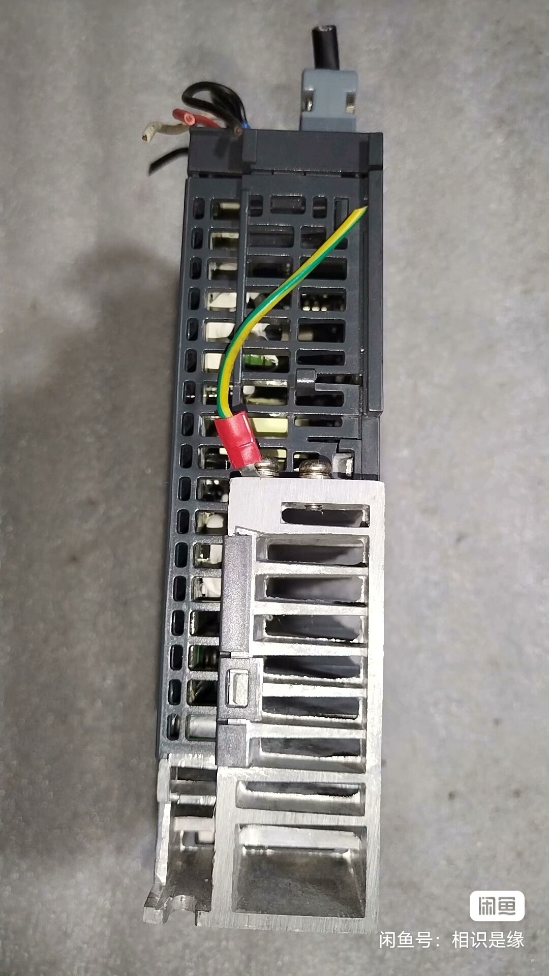 外观特征:设备主体为灰色金属外壳,正面配备数字显示屏,显示“SERVO”字样及当前状态信息。侧面设有接线端子排,连接有多根不同颜色的电线,包括黑色、白色、红色等,用于电源输入和信号传输。右侧有两个圆形接口,可能用于编码器或通信连接。整体结构紧凑,安装便捷。