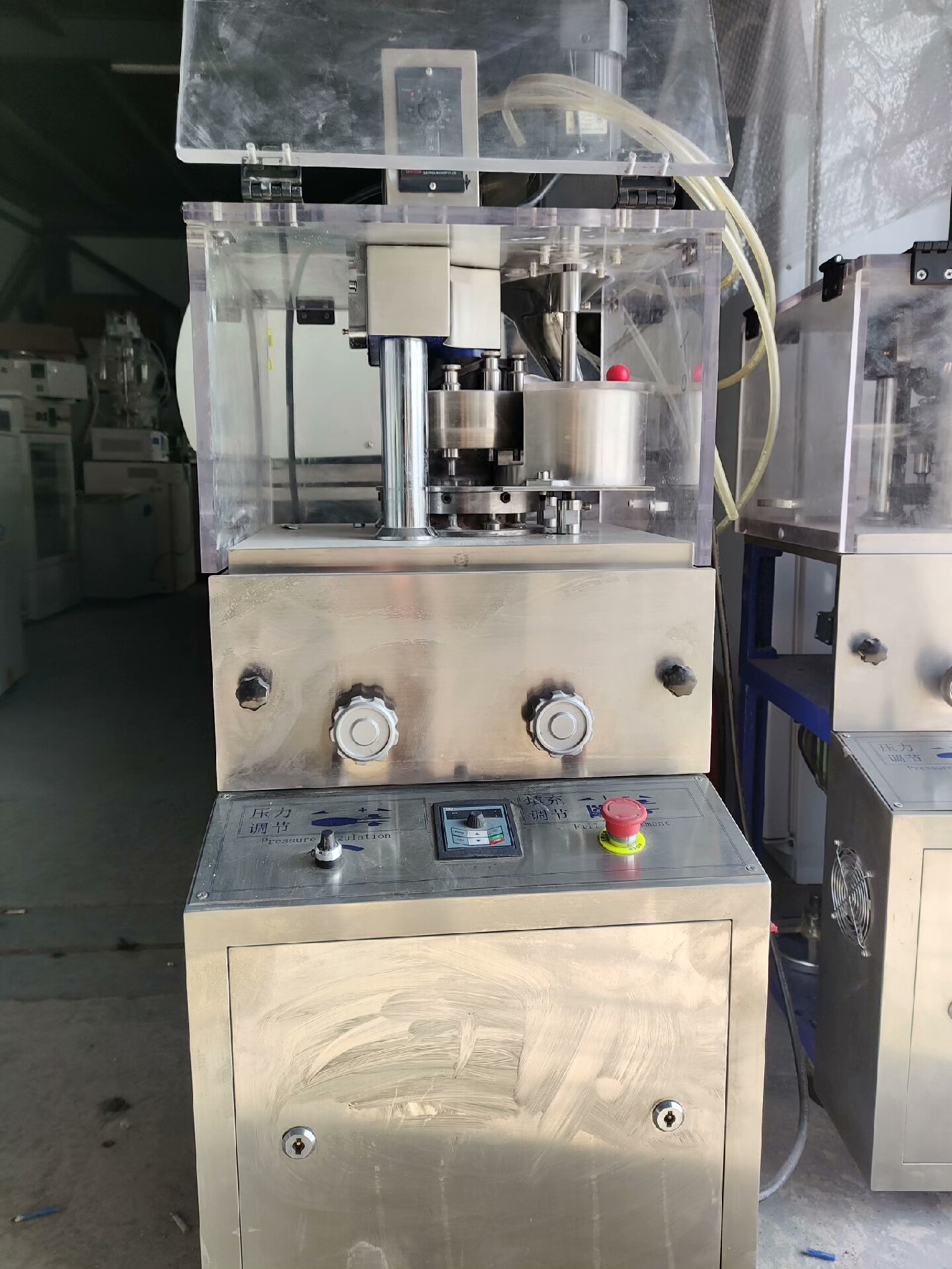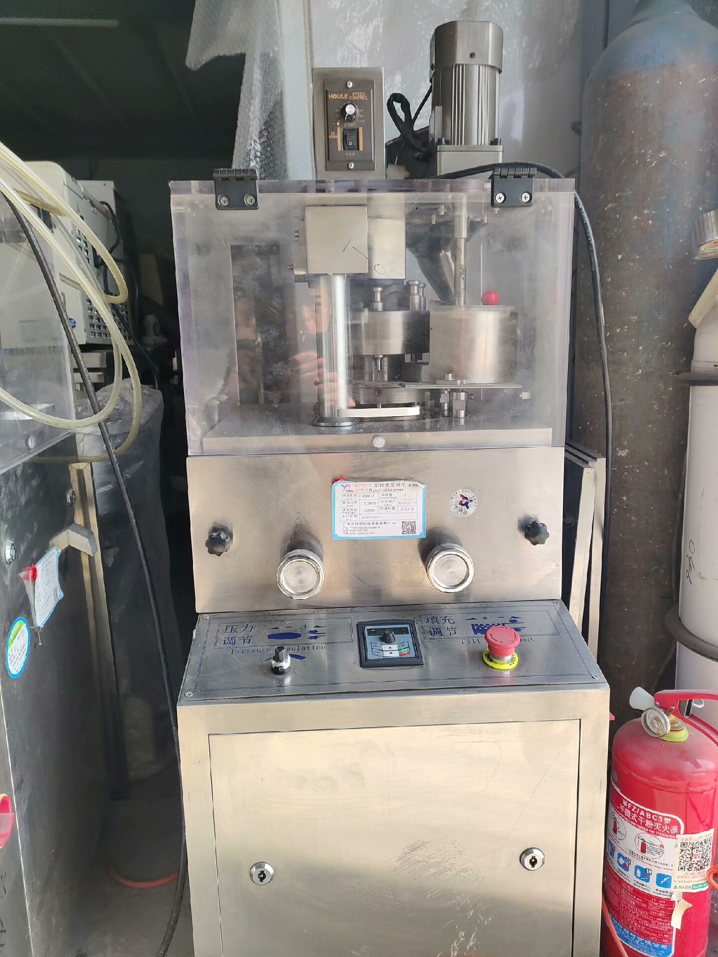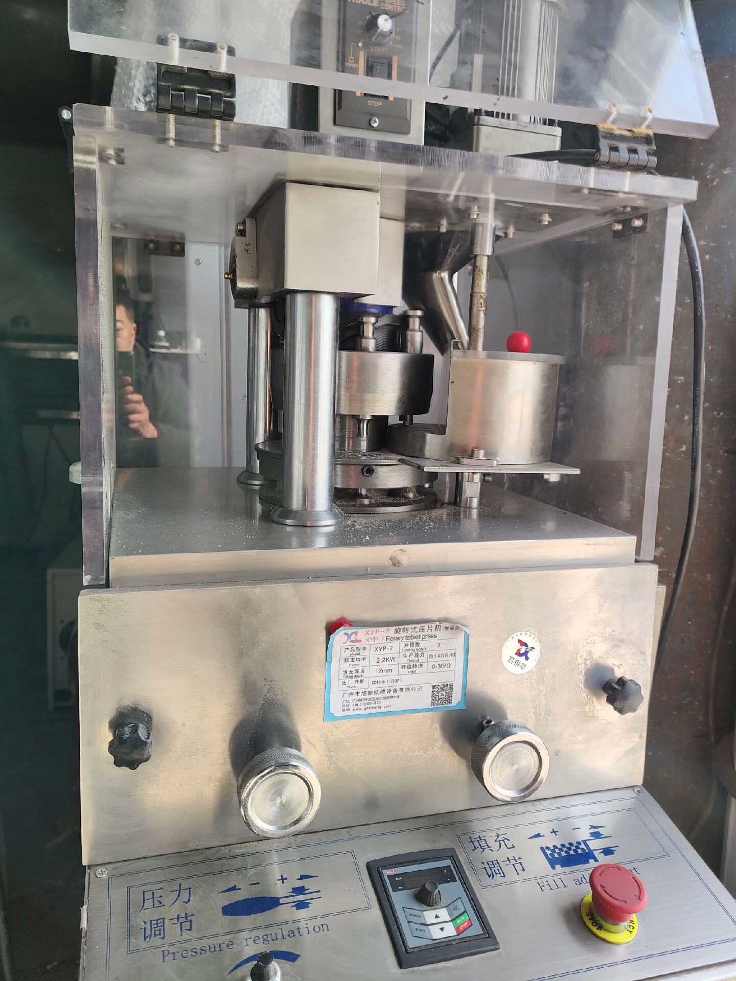 未知品牌增强型旋转式压片机是一款高效、稳定的片剂成型设备,包含XYP-7和XYP-9两个型号,分别于2019年和2020年出厂,适用于制药、化工、食品等行业的粉末物料压片生产。