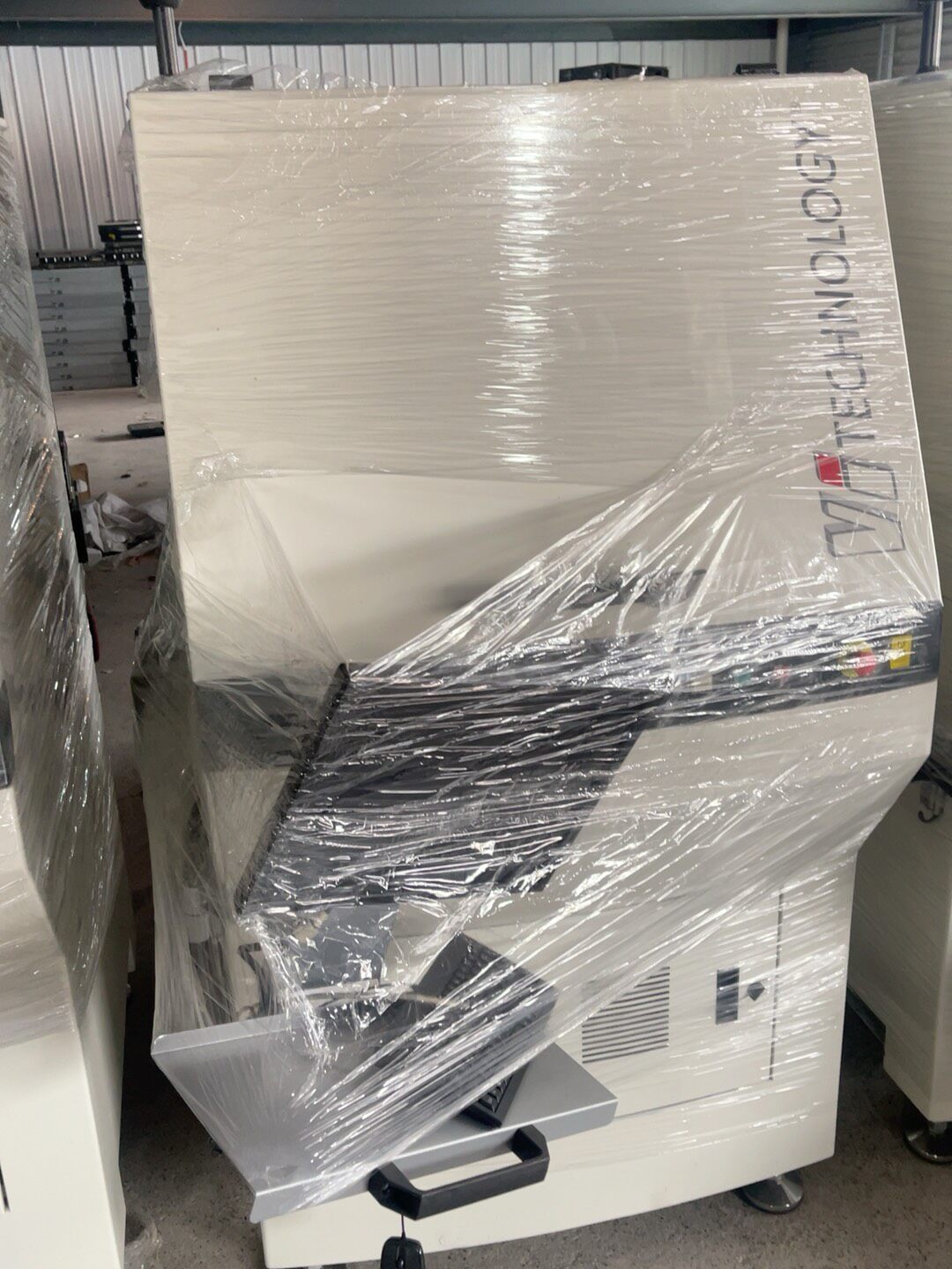 - 结构防护:设备主体采用白色外观设计,表面覆盖塑料薄膜保护,有效防止运输和存储过程中的划伤与污染。