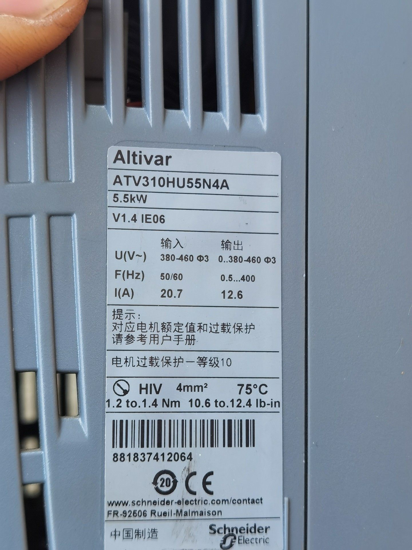 本产品为5.5KW施耐德变频器,型号ATV310HU55N4A,是工业自动化领域中常用的电机调速设备。该变频器采用先进的数字控制技术,能够实现对三相异步电动机的平滑启动、调速和节能运行。