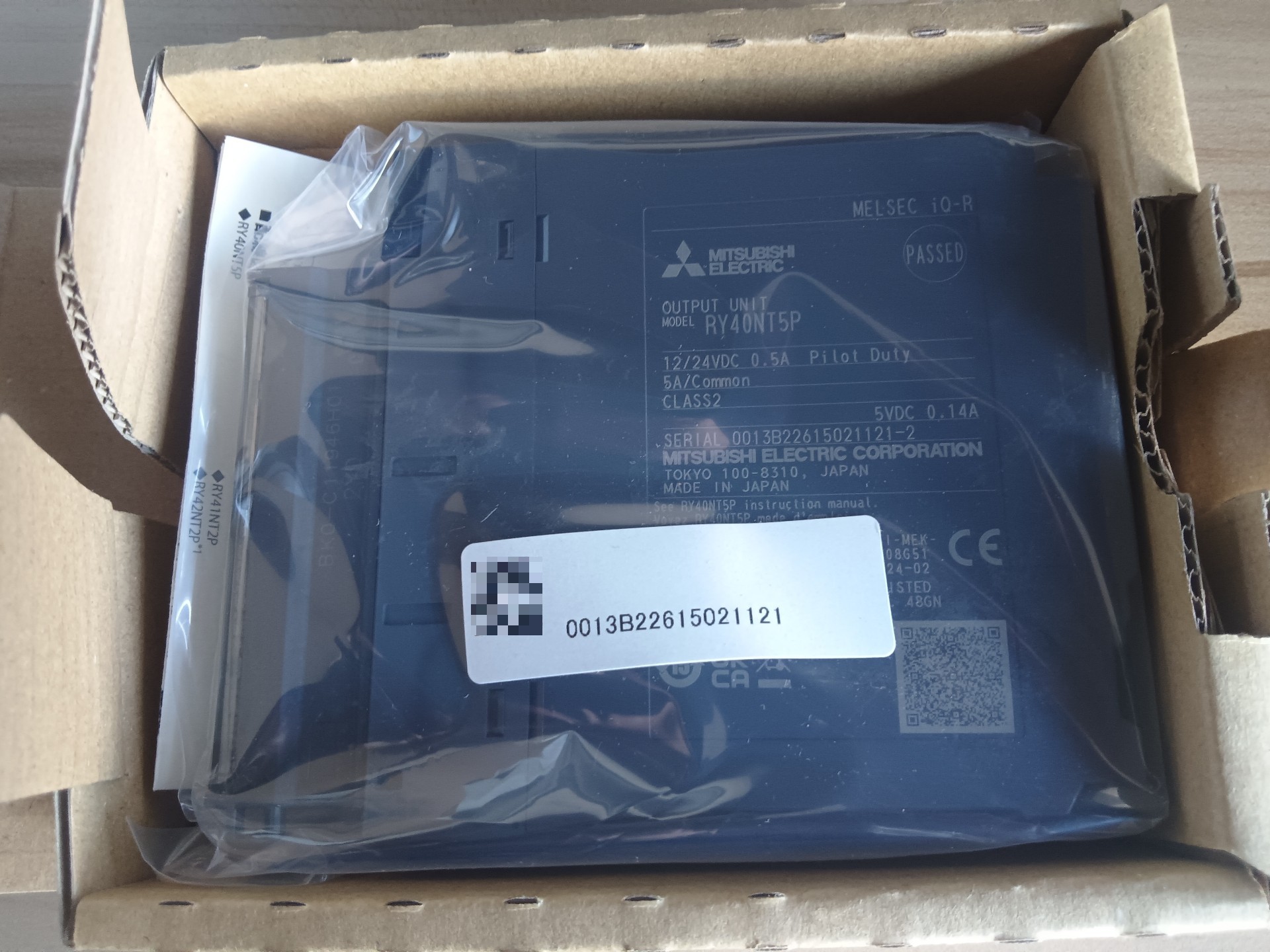 三菱RY40NT5P是MELSEC iQ R系列中的一款PLC模块,全新原装正品,未开封,包装完好,标签信息清晰,包含型号、生产日期(2024/2/26)、序列号(0013B22615021121)等关键标识,确保产品的 authenticity 和可靠性。
