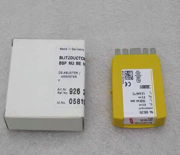 DEHN盾牌926270防雷器模块(型号BSP M2 BE HF 5)是一款高性能电涌保护器,专为电气系统提供可靠的防雷保护。产品采用黄色外壳设计,结构紧凑,便于安装和集成到各类工业及民用电气设备中。
