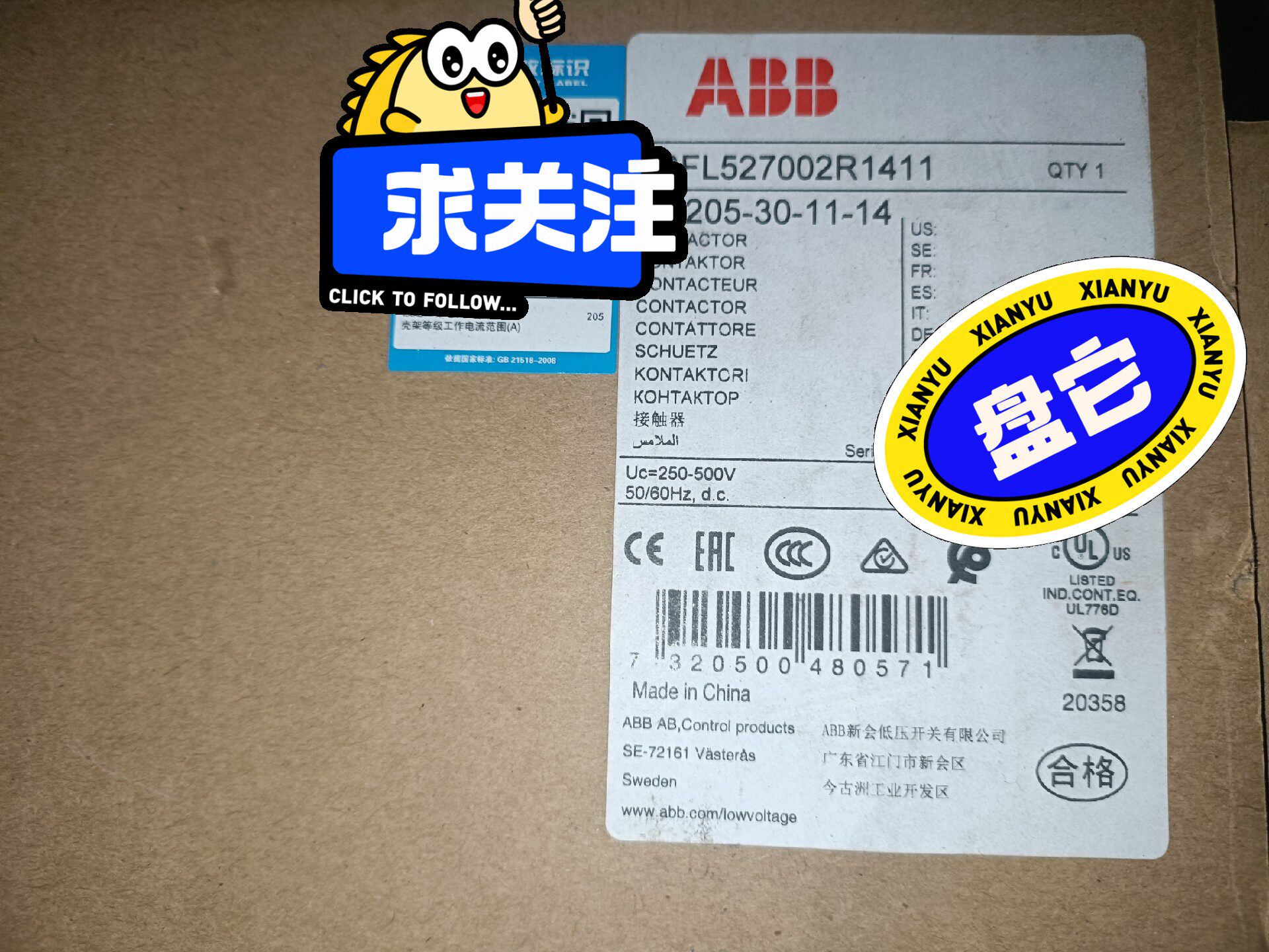 本产品为ABB品牌旗下的交流接触器,型号为AF205-30-11-14(订货号1SFL5270020R1411),是一款全新工业级控制电器,适用于交流电路的通断控制,广泛应用于工业自动化领域。