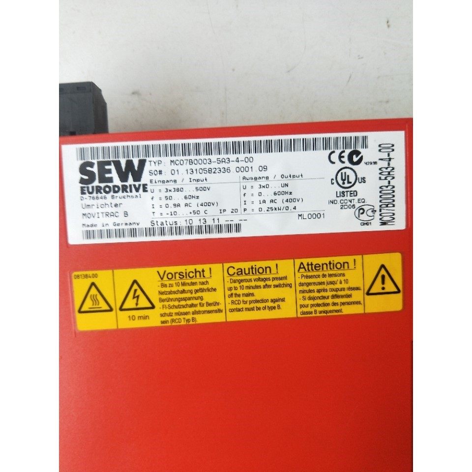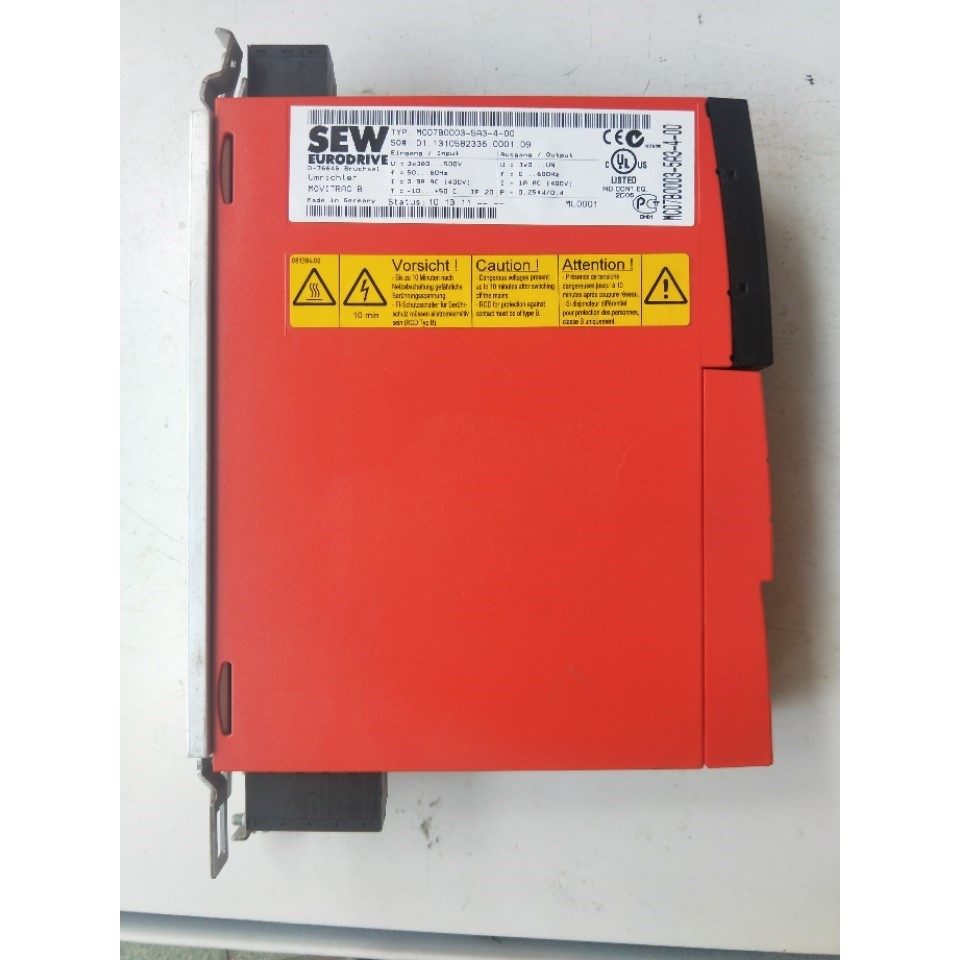 本产品为SEW品牌生产的VAR1501型号变频器,专为工业自动化领域设计,具备高性能与高可靠性。其红色外壳坚固耐用,黑色控制面板集成旋钮、RUN/STOP按钮及方向控制键,操作直观简便。