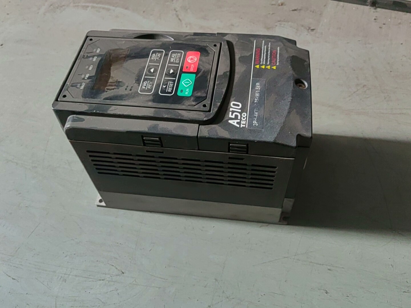 这是一款来自东元(TECO)品牌的A510系列变频器,型号为A510-401-H3。该设备专为工业自动化领域设计,广泛应用于电机调速、节能控制以及各类机械传动系统中。