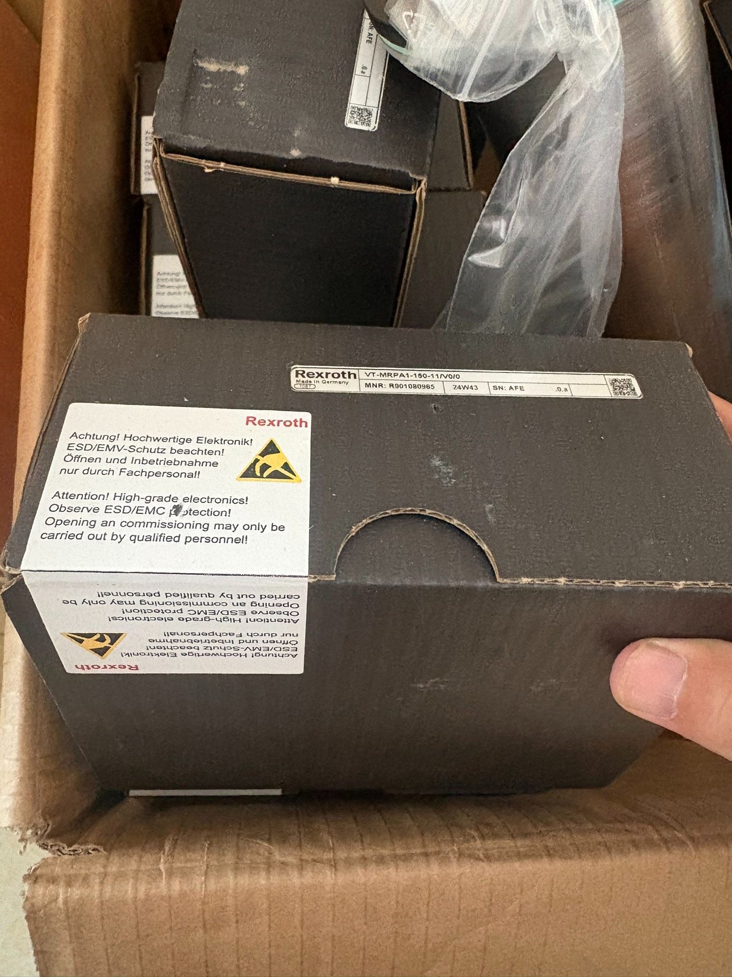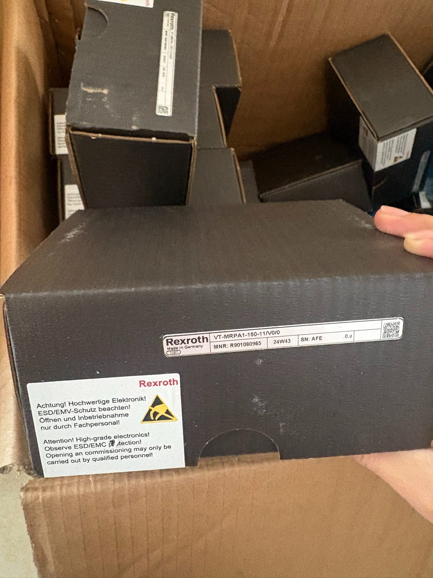 - 技术参数清晰:标签上标明了MNR(物料编号)R901080965、序列号AFE以及生产批次信息,便于追溯和管理。