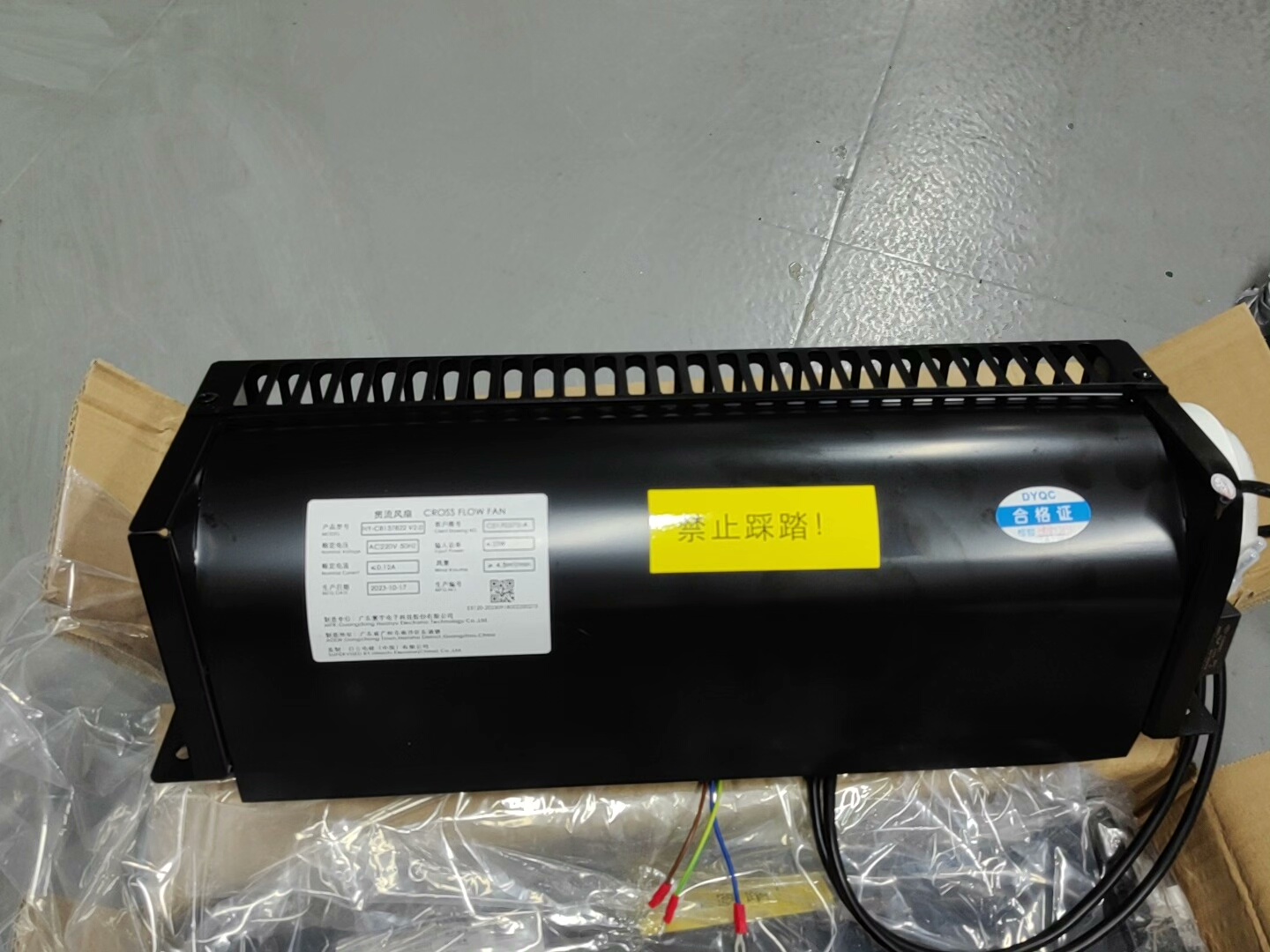 该风扇采用优质材料制造,具备良好的耐腐蚀性和耐用性,适合长期连续工作。外观设计紧凑,安装方便,适用于狭小空间内的通风散热。包装完整,带有“禁止踩踏”警示标识,确保运输过程中的安全。