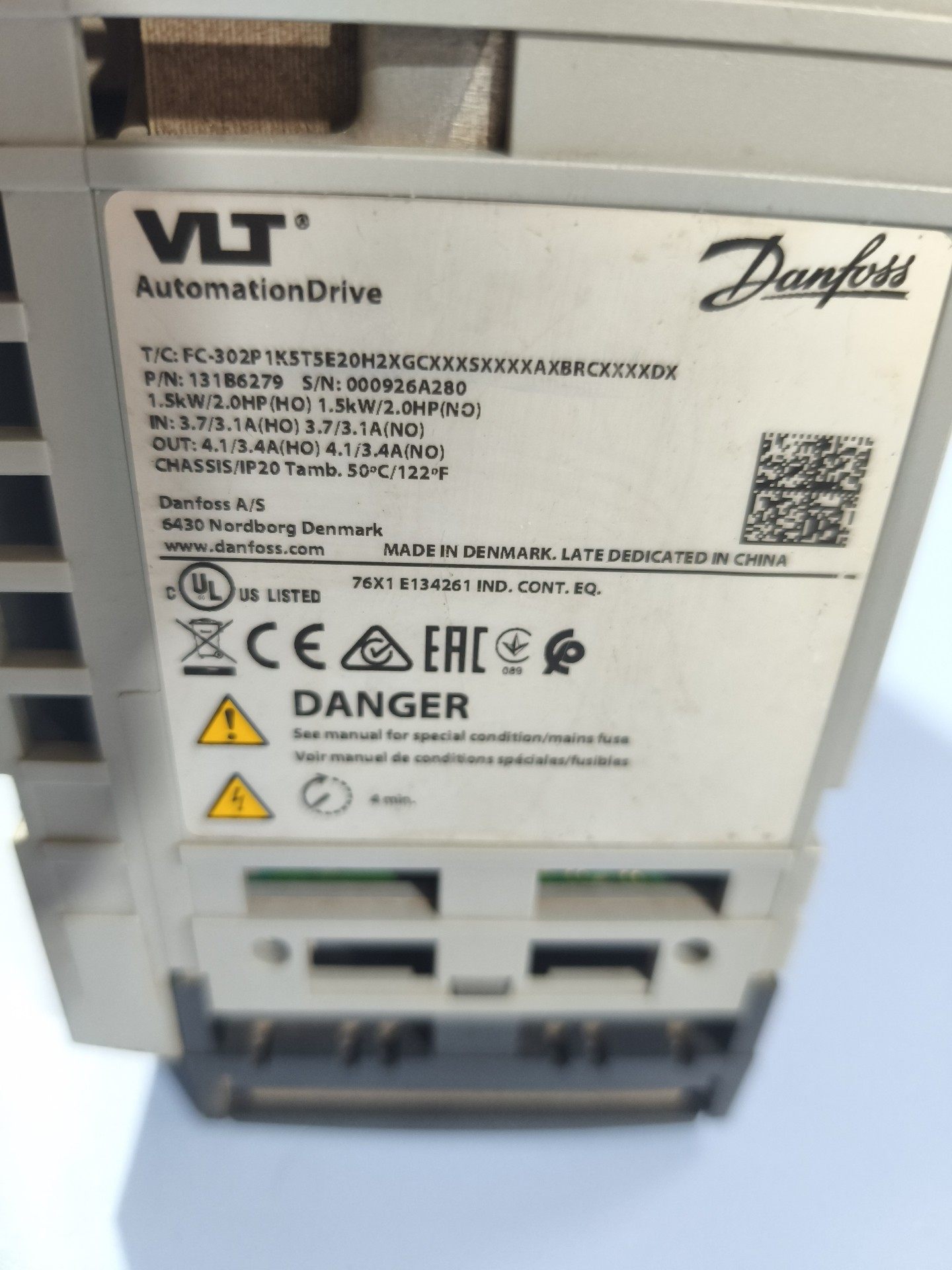 本款产品为丹麦知名品牌Danfoss(丹佛斯)生产的FC-302系列变频器,具体型号为FC-302P1K5T5E20H,是一款高性能、高可靠性的工业自动化驱动设备,广泛应用于风机、泵类、传送带等需要调速控制的场合。