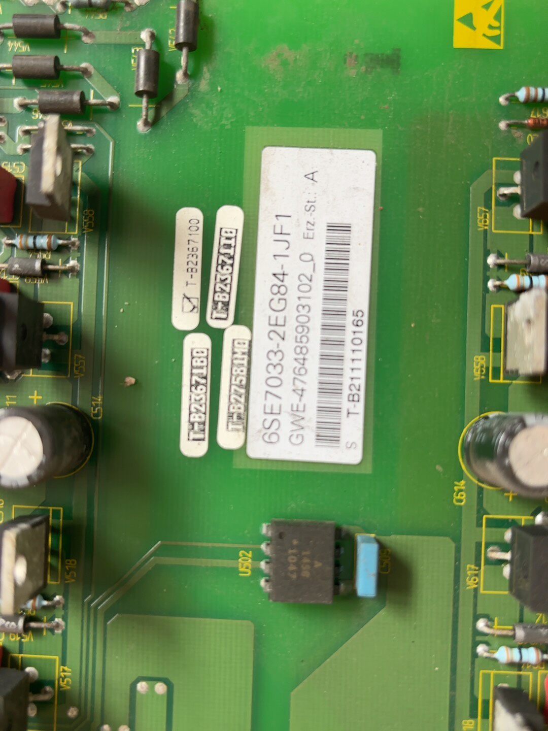 西门子 6SE7033-2EG84-1JF1 触发板驱动板是西门子6SE70系列变频器的关键核心部件,采用绿色PCB电路板设计,集成了电容、电阻、精密连接器等多种电子元件,主要负责变频器内部功率模块的触发控制与驱动信号传输,确保变频器稳定、高效运行。本产品为二手拆机件,经过功能检测,确保性能完好,成色如图所示,适用于西门子6SE70系列变频器的维修替换。