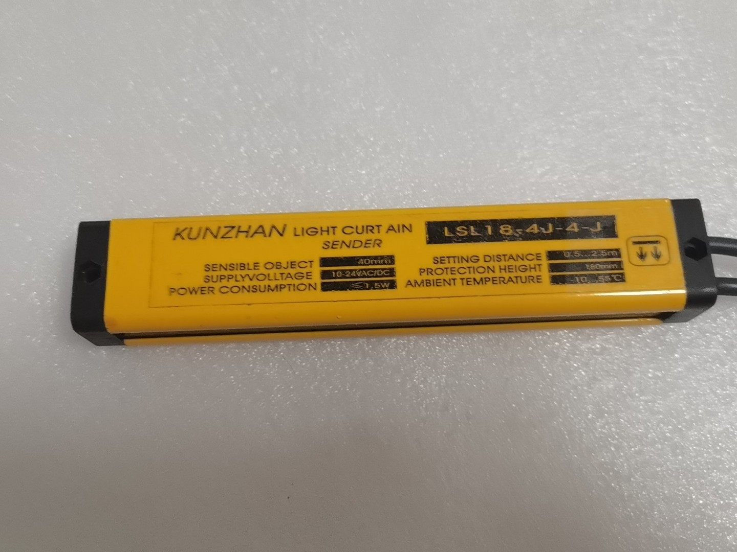 本产品为KUNZHAN品牌的安全光幕(型号:LSL18-4J-4-J),属于工业安全防护系统中的关键组件,主要用于检测人员或物体是否进入危险区域,从而触发安全机制,保障操作人员的人身安全。