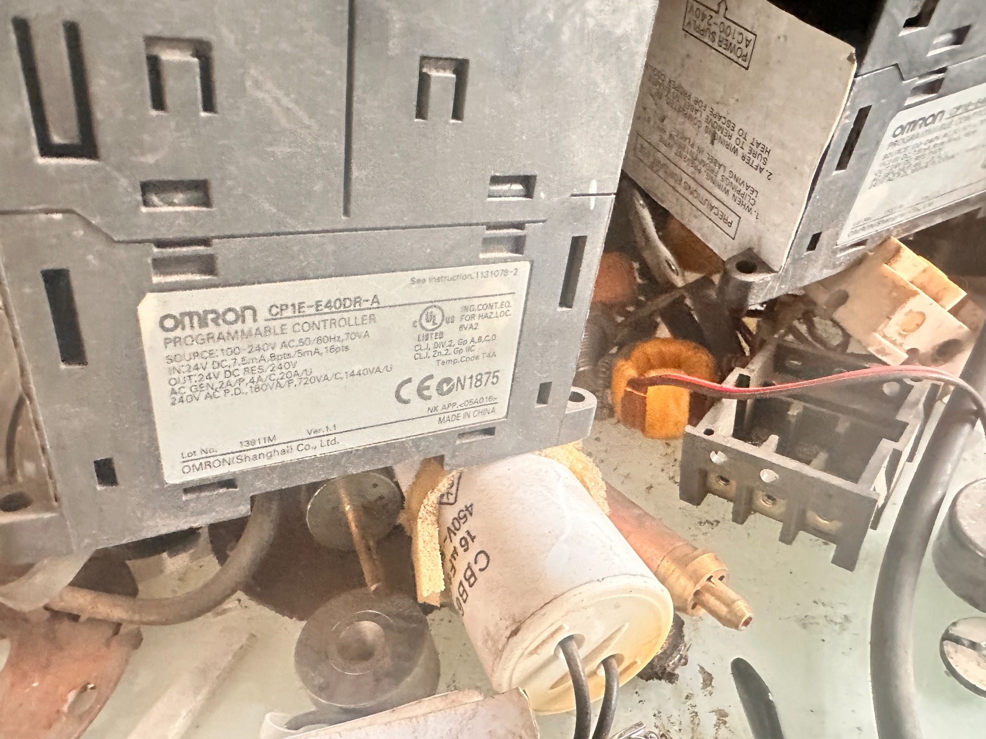 本文介绍的是两台欧姆龙(OMRON)SYSMAC CP1E系列PLC,该系列是欧姆龙推出的紧凑型可编程逻辑控制器,专为中小型自动化系统设计,具备高性价比和可靠的性能。设备表面有一定使用痕迹及灰尘,属于二手工业控制设备,适合预算有限的自动化改造或备件替换场景。
